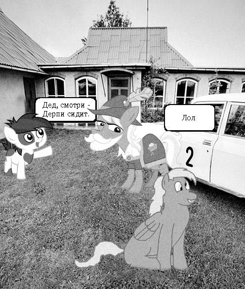 Вдруг окно распахнулось с такой силой, что стёкла задрожали. В комнату ворвался седой пони в ржавых доспехах. Его глаза горели безумным огнём, а в руках он держал чемодан с надписью ДМБ 2012. Пони сделал глоток прямо из горла и, пошатываясь, направился к кровати.