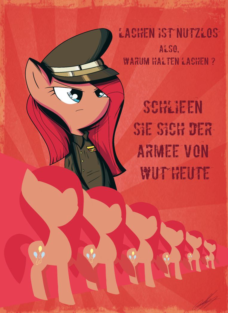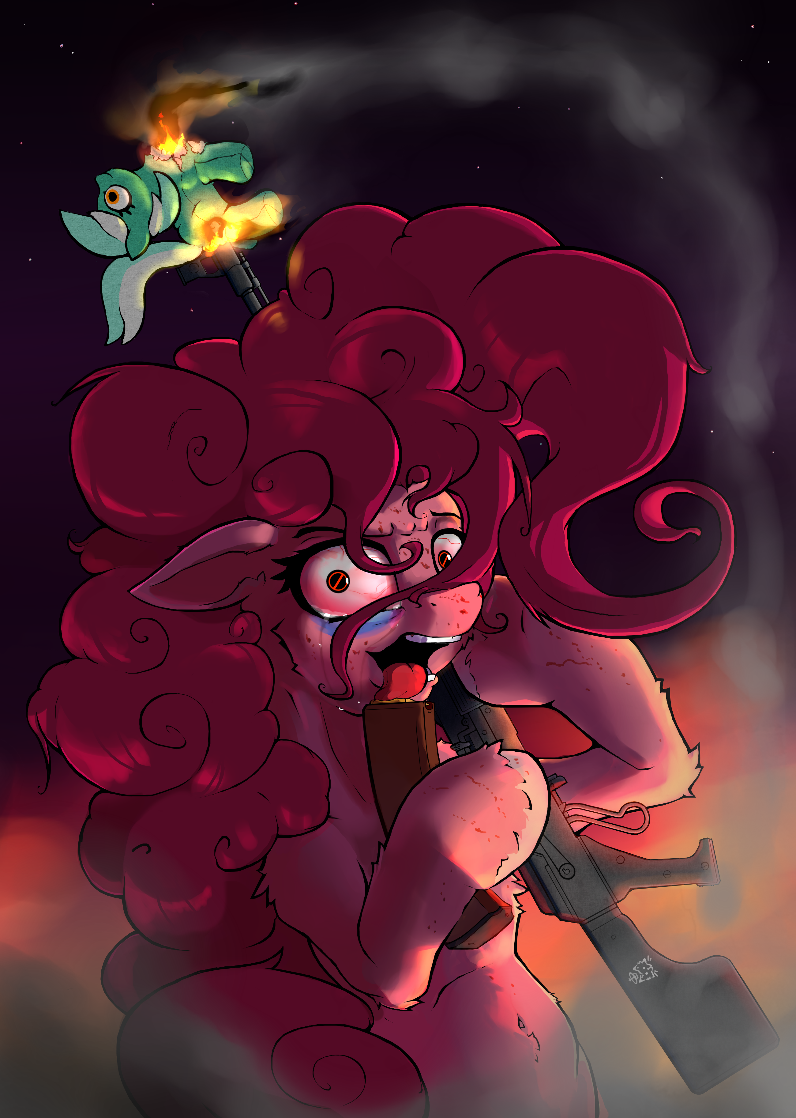 Пинки присоединяется к мятежу из-за того что «Сахарный Дворец» был задавлен продовольственной монополией Флима и Флэма, а окружающин пони ходят в лучшем случае недовольными, а в худшем безработными или вовсе озлобленными, т.е. веселье в Эквестрии закончилось. Вступив в ряды революционной армии, Пинки быстро поднялась по карьерной лестнице, используя необычную боевую тактику "сюрпризов", Пинки-чутьё, чтобы предугадывать действия противника, и свою харизму, поднимая моральный дух в армии. чёрт, я не думал, что всё будет настолько сходиться... не зря так много артов именно с Понк в военной форме