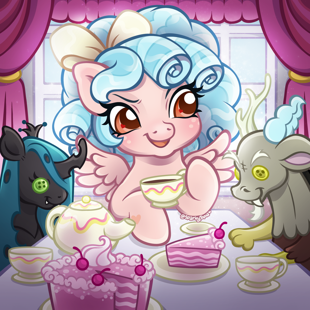 Оставила чашечку вкусного ароматноого чая на прикроватном столике для поньки и ускакала на чердак
