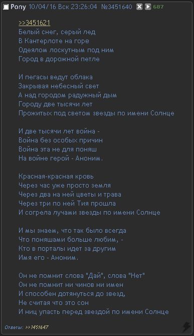 Если ты в посте рулетку Заприметил, юный друг, Или пони вдруг конфетку На картинке лижет с рук, Если омские кривульки, Гомошиппинга накал, Лижут два кольта сосульку, Знай - ты Энви наблюдал.