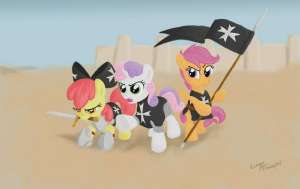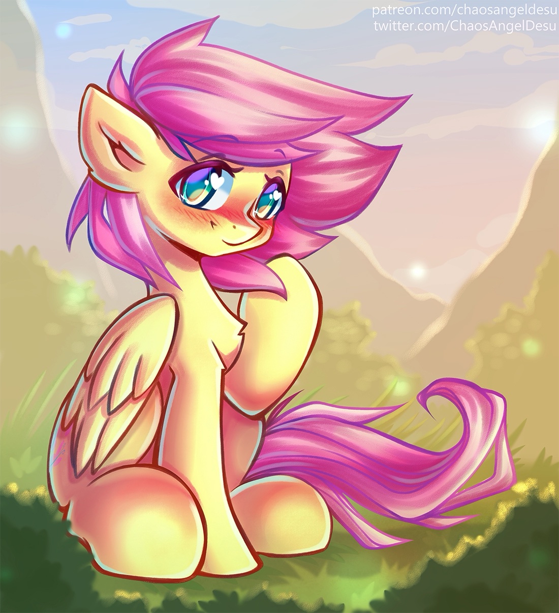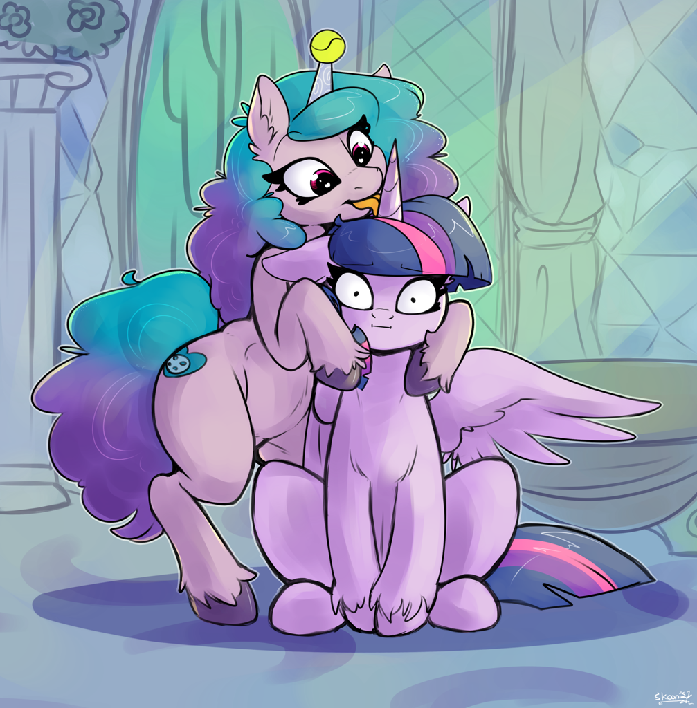 — Скуталу, встань! Принцесса же! — тихо шикнула Рейнбоу Дэш, слегка потянув её за крыло. Скуталу нехотя поднялась.