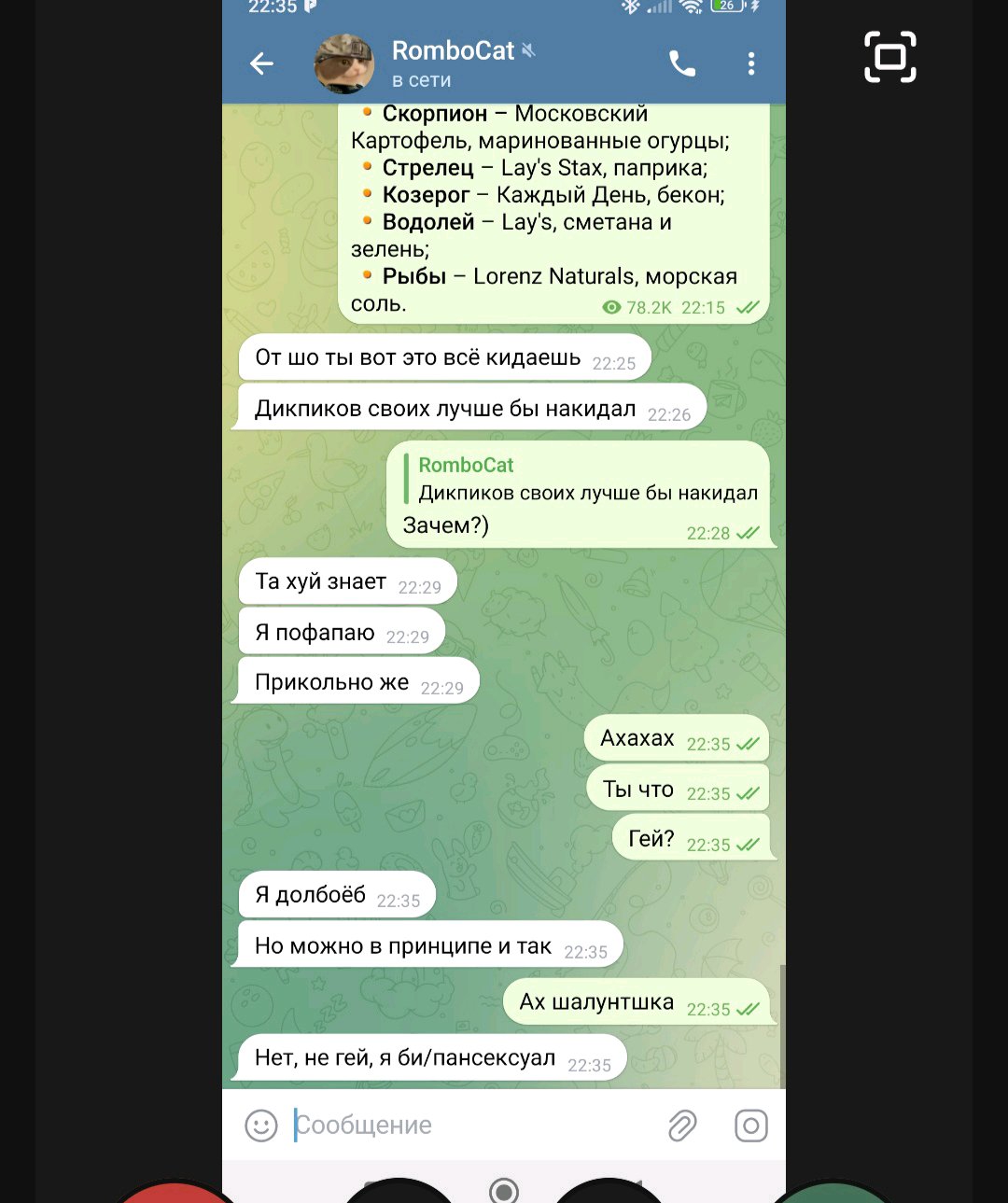 >>4430759 Кукич возбудился. >>4430752 Да, ты прав. Тупая тян бы просто отреагировала бы отвращением, а не скидывала бы обработанное фото, да и тян не умеют в быстрое обучение, чтобы трипкод так быстро сделать. В целом, это может быть ГБ или ещё кто
