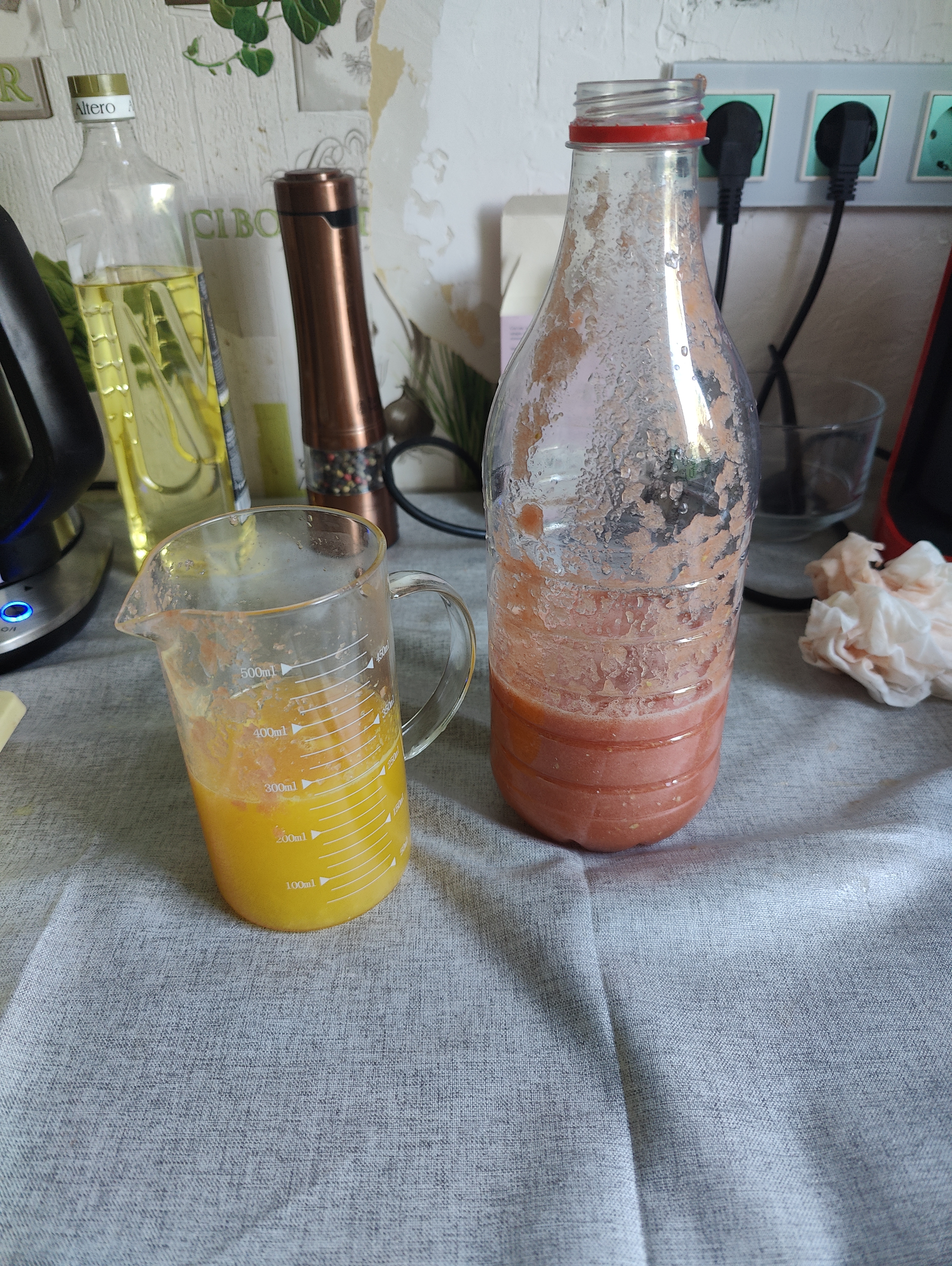 Алсо, мешаем свежеприготовленный томатный сок с апельсиновым, табаско, сок лайма, соль, молотый перец, и почти всё готово, чтобы отметить первый день отпуска.