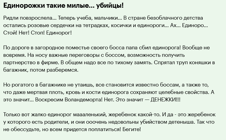 ТОЩИЙ МЕСЯЦ ПО НЕБУ ПЛЫВЕТ А ГДЕ ТО ЧЕЙНДЖЛИНГ СОК КРИЗАЛИС ПЬЕТ МЫСЛИ ГЛОЖУТ ЕГО, ВСПОМНИЛ ОН СЫНКА СВОЕГО С ПРИПЛОДОМ ИМ УВЫ НЕ ПОВЕЗЛО РОДИЛСЯ ДВУХГОЛОВЫЙ КАК НАЗЛО ЖЕНА СЫНА ВЗЯЛА, И ВМИГ ЕГО СОЖРАЛА