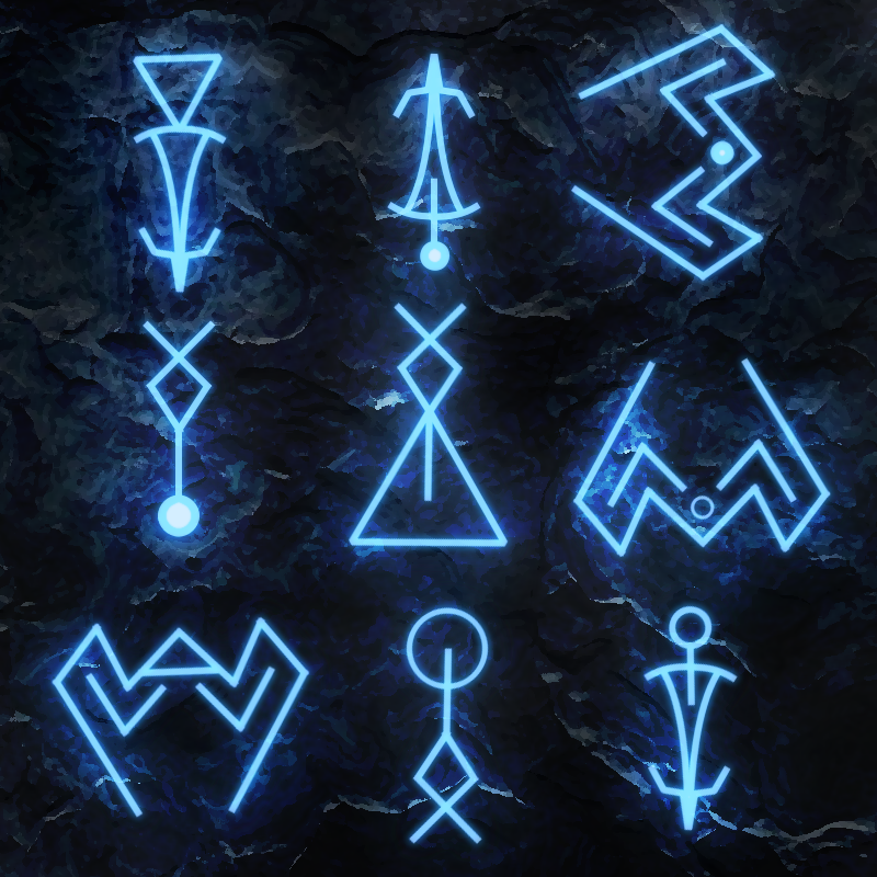 >>Подойдя к воротам вы увидели круглый замок, рядом с которым были беспорядочно нанесены руны - по центру же находилось свободное пространство, на которое, судя по всему, и предполагалось нанести гальдастрафу. >>Вам требуется составить из этих рун симметричную гальдастрафу - важно помнить, что руны связаны по смыслу. В правильной гальдастрафе линии зачастую идут параллельно друг другу. Возможно наложение одной руны на другую. >>Важно: положение рун на камне не искомое, то есть каждую руну надо вращать, чтобы правильно поставить её. >>Вам нужно её начертить, чтобы открыть ворота. ... >>На камнях вы обнаружили подсказку - стертая от постоянного черчения поверхность вырисовывала вам силуэт. >>Так, гальдастрафа была частично симметрична по трём направлениям, а её центр явно представлял из себя три фигуры, вложенных одна в другую. >>Силуэт вам напоминал знак радиактивной опасности.