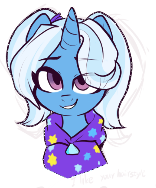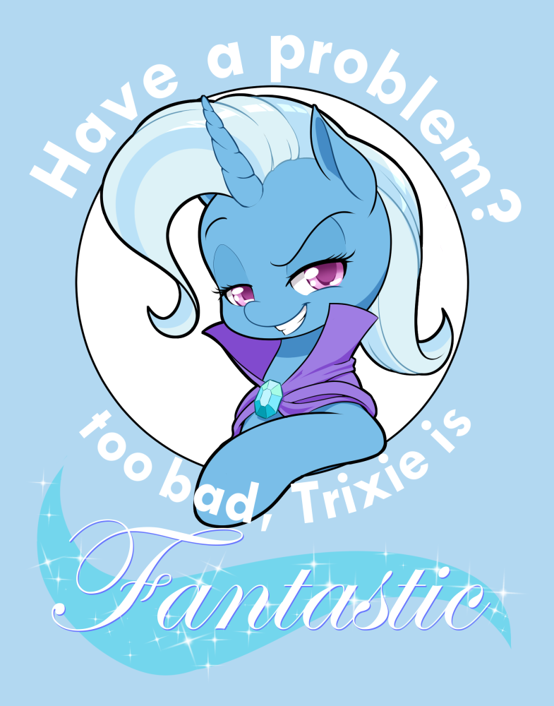 > Мундэнсер. Про это и в бестиарии написано. Я его трипкод забыл. Там вообще смешная история. Я ещё когда только тут появился, заметил, что всем тут обидные прозвища придумывают. Спрашивал, забабахают ли мне какую-то кличку, но тогда попросили сначала раскрыться в общении. И то ли я просто слишком серая масса без каких-либо особеностей, то ли наоборот самый настоящий Трикстер, но меня так и продолжили называть по аватарке. Так что если я вдруг надену ещё лошадь поверх 3X1E, то как меня тогда называть? ТриксиЛулаМунДэнсер? ЭтотСамыйНуКакЕго? Или так и будет Трикси, что не имеет особого смысла? Да и к Трыксистанчику я уже привык как-то Так что если я и буду постить ТанцораКоторомуНичегоНеМешает, то отдельно от Триксы. Если конечно между ними не возникнет диалог.