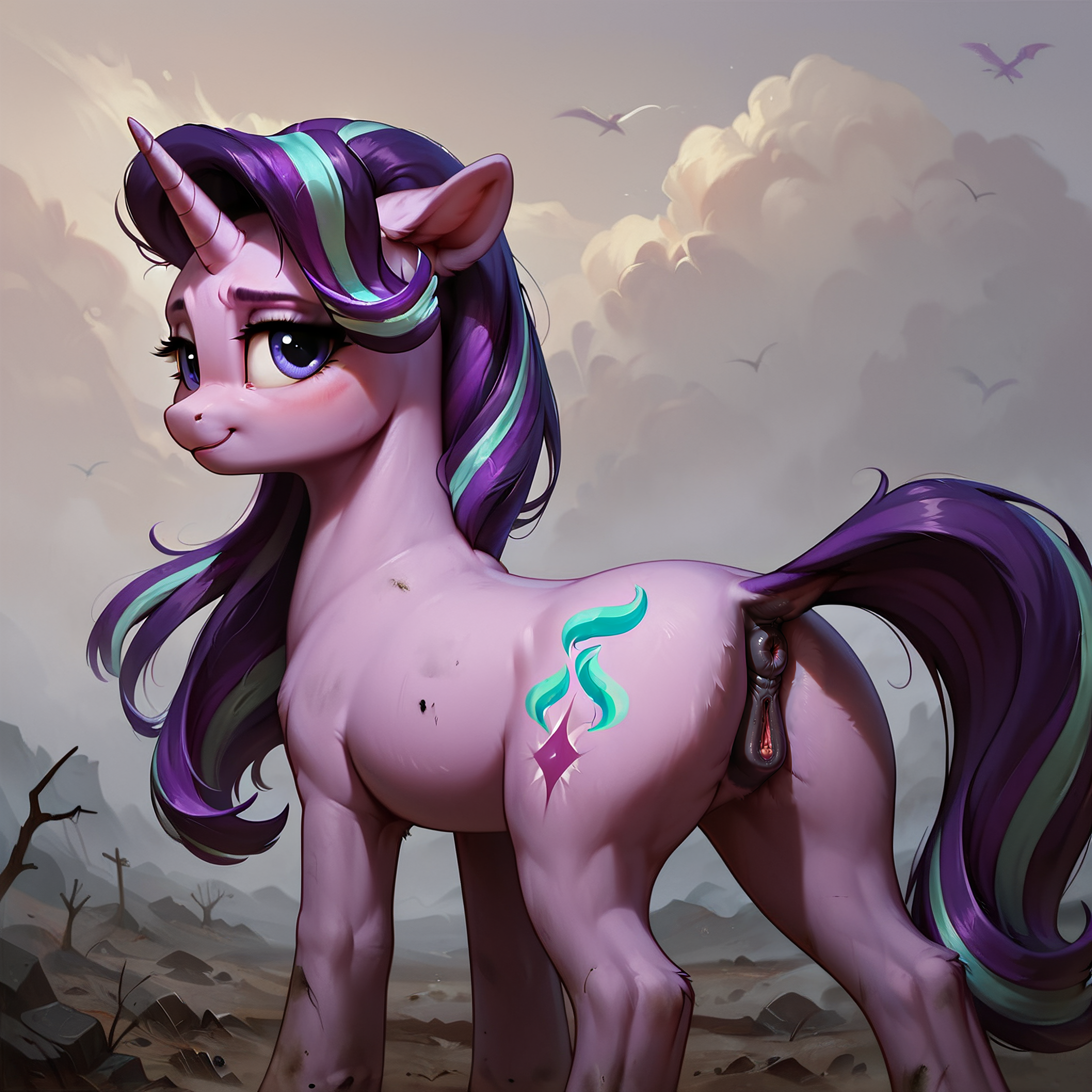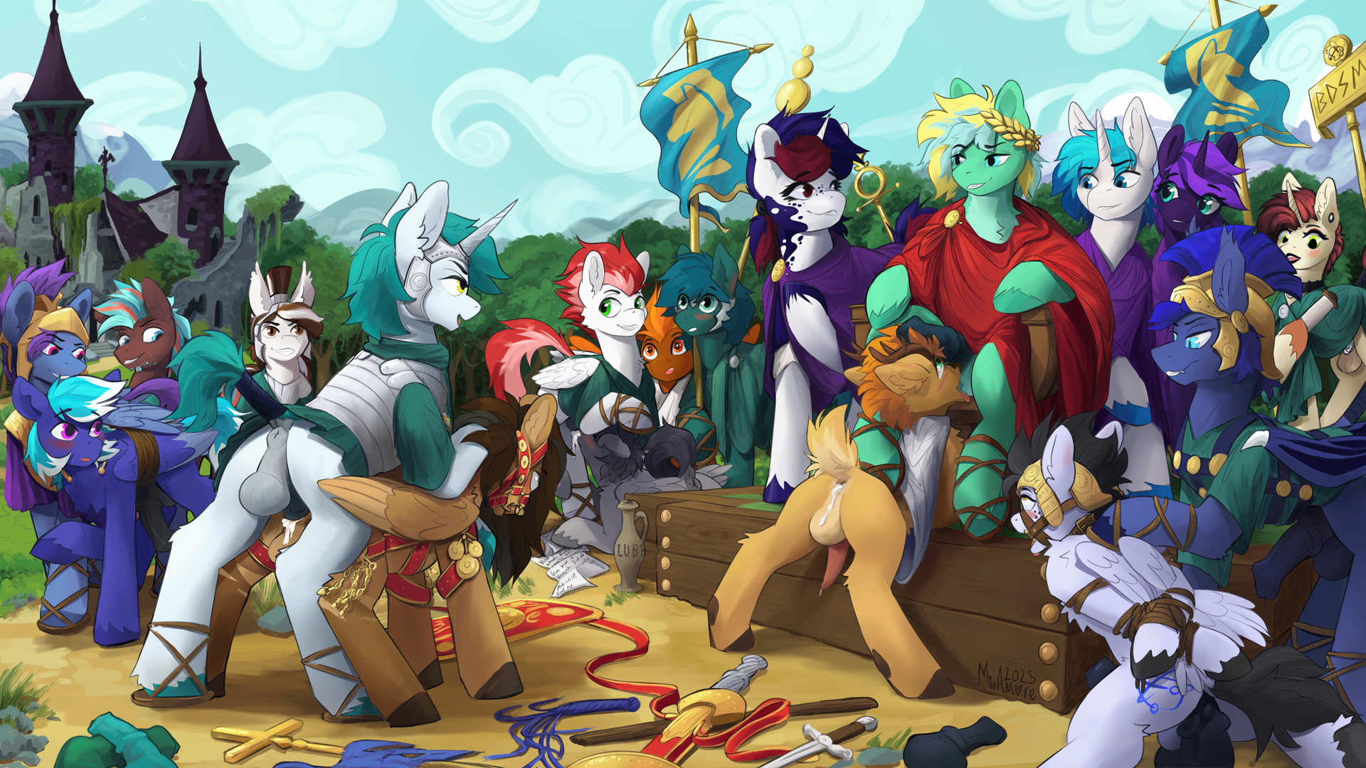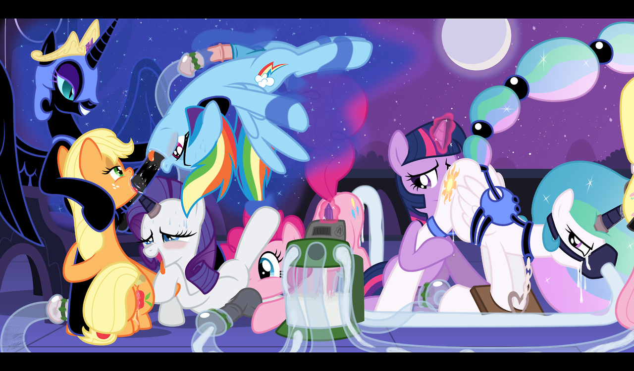 А вообще вместо М6 лучше бы для разноообразия взяли например сюжетных временных или постоянных злючек. Кризалис, Кози Глоу, Темпест Шадоу, Гильда... (Найтмар Мун или Старлайт Глиммер это слишком просто и неинтересно) Та же Кризалис может выебать во все дырки не хуже жеребца, если попросить или сама захочет.