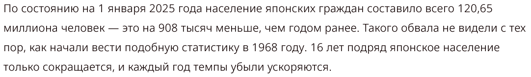>>4438806 Так это глобальный тренд. Тут как говорится, чего на других пинять, когда у самих тоже самое. Ну, может не совсем тоже самое, где-то этот процесс быстрее, где-то медленнее. Тут скорее надо думать, как самому прожить эти самые 15 лет.