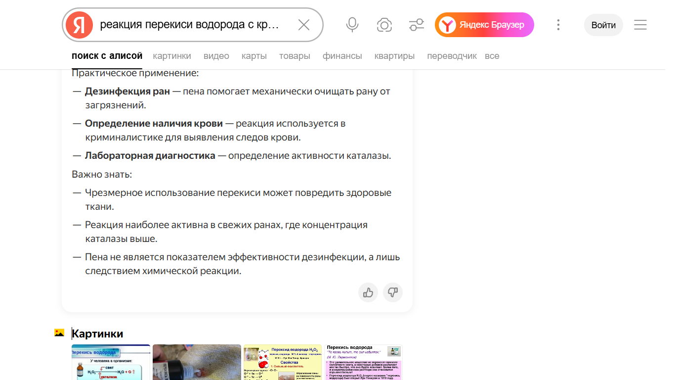Выше 3% не надо. Сожжёт рану. Останавливает кровь коркой на ране серой. Всё шипит и пенится. Это не больно. На себе проверял. Я так понял, реакция окисления с разложением перекиси на кислород выделение (благодаря чему реакция и происходит с кровью) и воду. Хороший антисептик на старте. Ей года 3. Она до сих пор работает. Пофиксили срок годности. Зачёт в общем тема