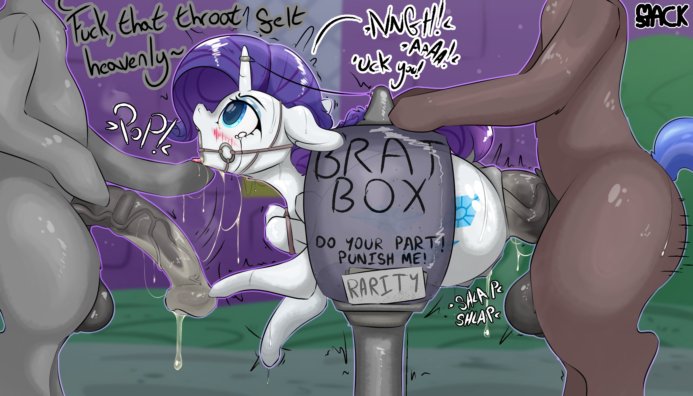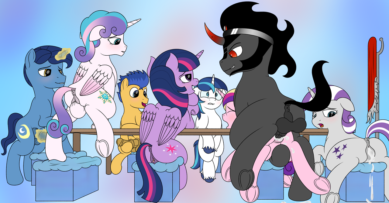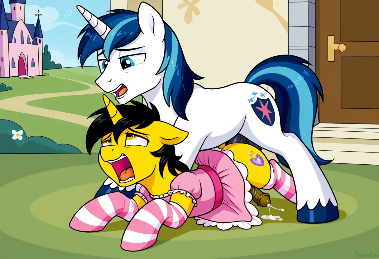The king slammed his penis into Shining's tight, possibly virgin asshole, making the guard captain cry out in agonized pleasure. He ground his ass against him in the hope that focusing on Sombra would make things hurt less for twilight. Oh Celestia… that thick shaft… that flared head… so much pain, but he wanted more. "Please take me, Sombra, I want to be your slave." He thought. "I want to be bound and gagged with the woman I love, at your hooves…"