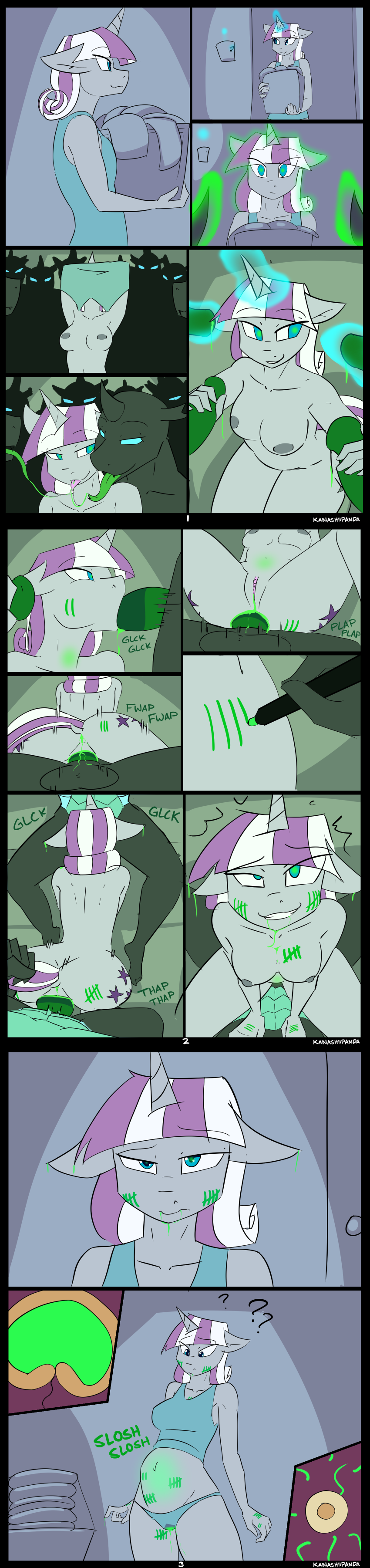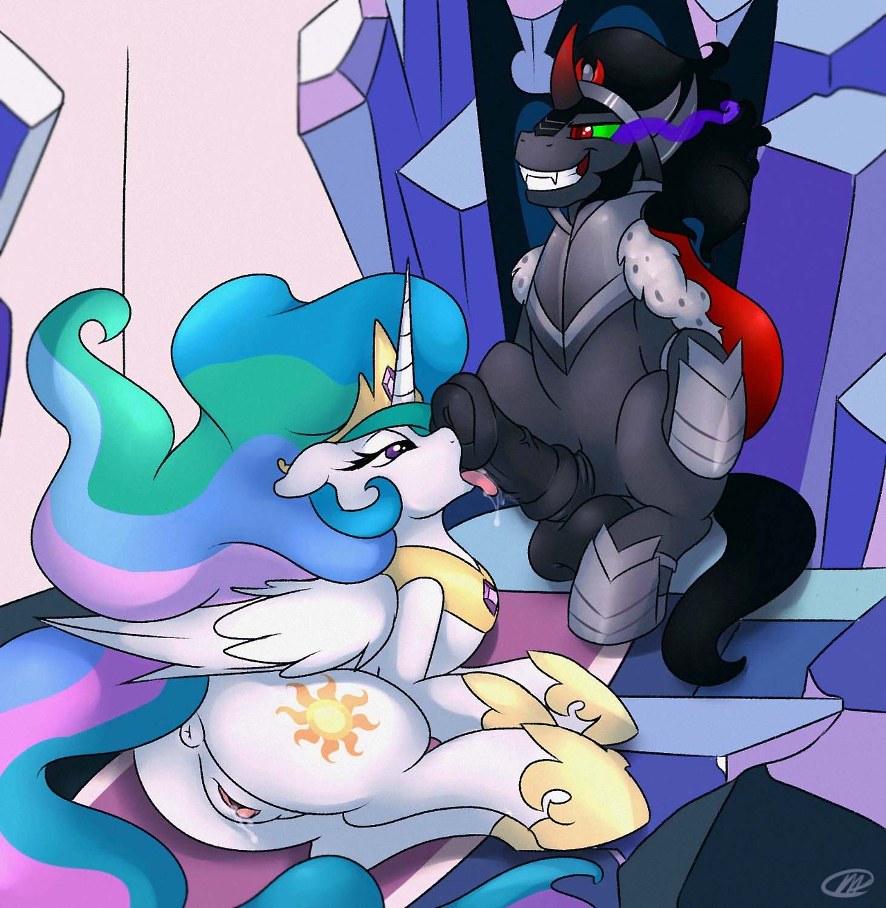 Sombra looked up at Shining armor as he bent his wife over. He took her tail in hand as he rammed her moist tight pussy. The noises she made, the moans and whimpers, were indistinguishable from pleasure and pain. Magic sparks spurted from her horn, nullified by the magic ring. With every forceful thrust, Candace felt every last lingering wisp of resistance fade away.