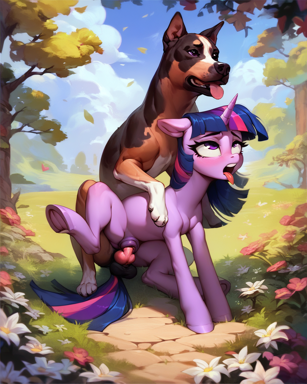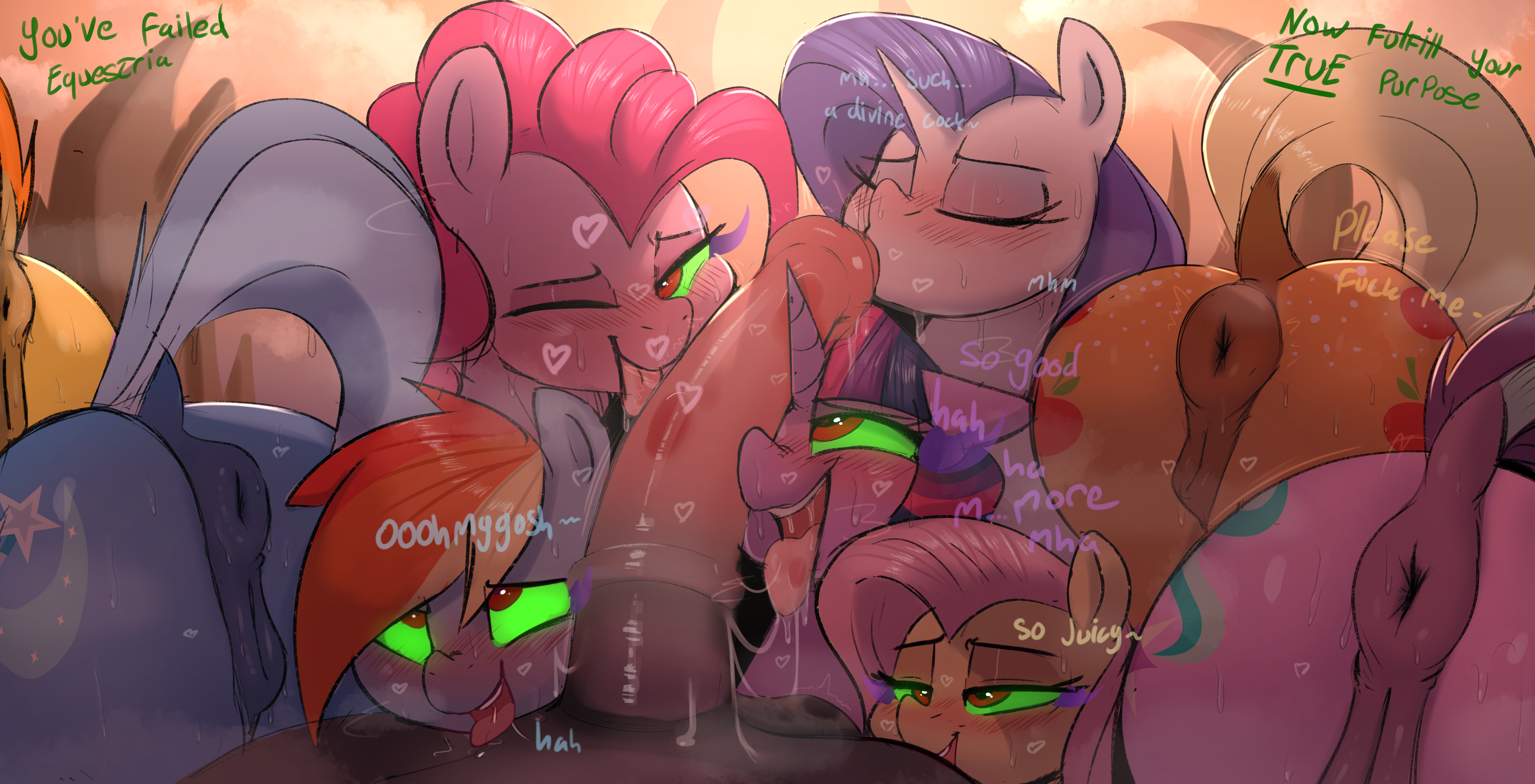 Twilight tried twisting her mouth along the bulbous shaft forced into her mouth. She closed her eyes and tried to think of another stallion… Soarin'. sweet, strong, sexy soarin'…. mmm… she could almost smell his cloudy fur and feel his strong hands on the back of her head…