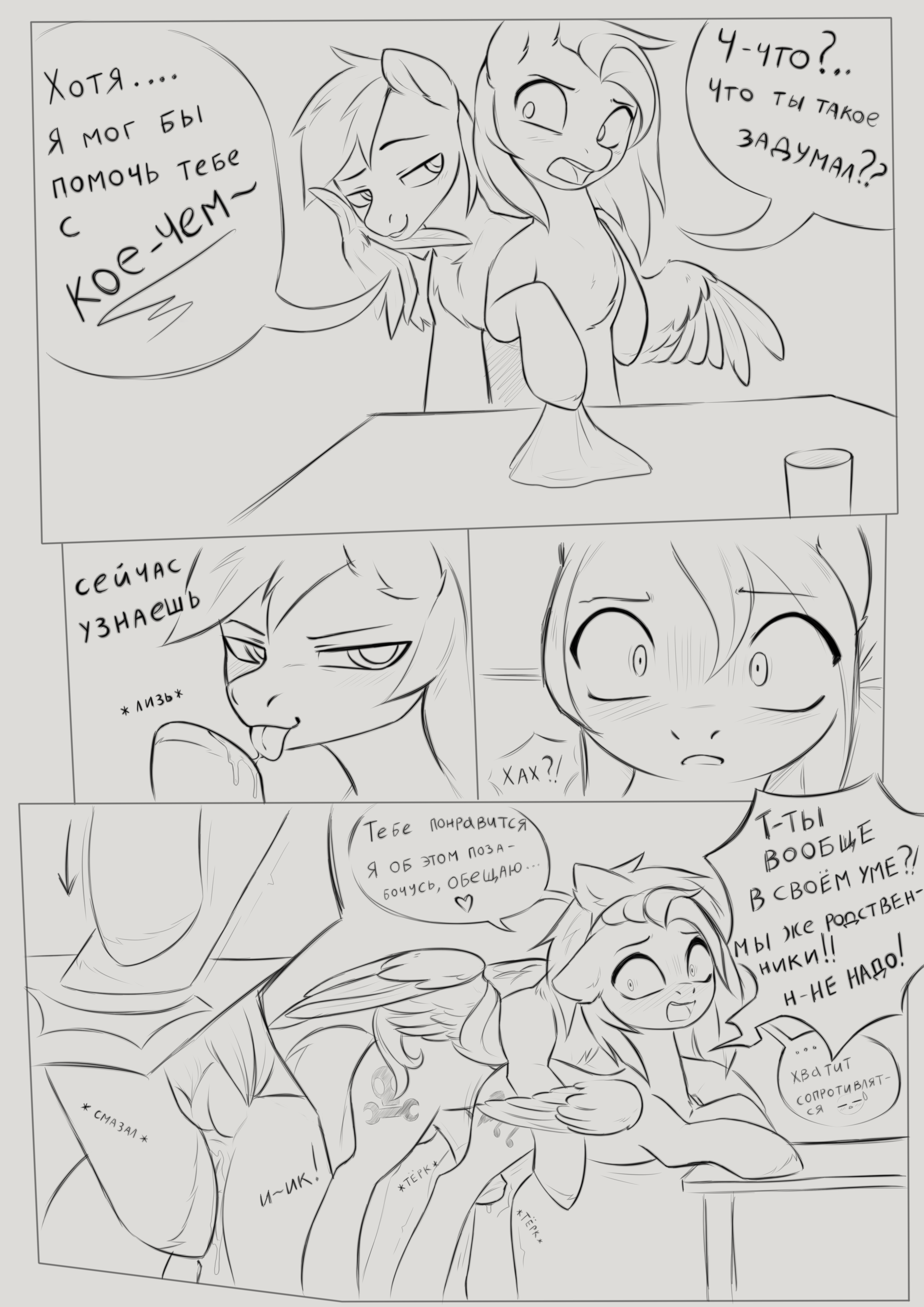 Принцесса Каденс, её величественная мать, с мокрым от слёз и, увы, не только слёз лицом, плавными, отточенными движениями языка полировала основание. Её рог тускло поблёскивал в тусклом свете. Рядом, отвернувшись, с зажмуренными глазами, работал Шайнинг Армор. Каждое движение жеребца было откровенной пыткой. Его челюсти были сжаты так, что, казалось, вот-вот треснет эмаль на зубах, а всё тело напряжено в немом отчаянии. В его глазах, полных стыда и ненависти, читалась одна-единственная мысль — он делает это не для себя, а чтобы пламя не поглотило других.
