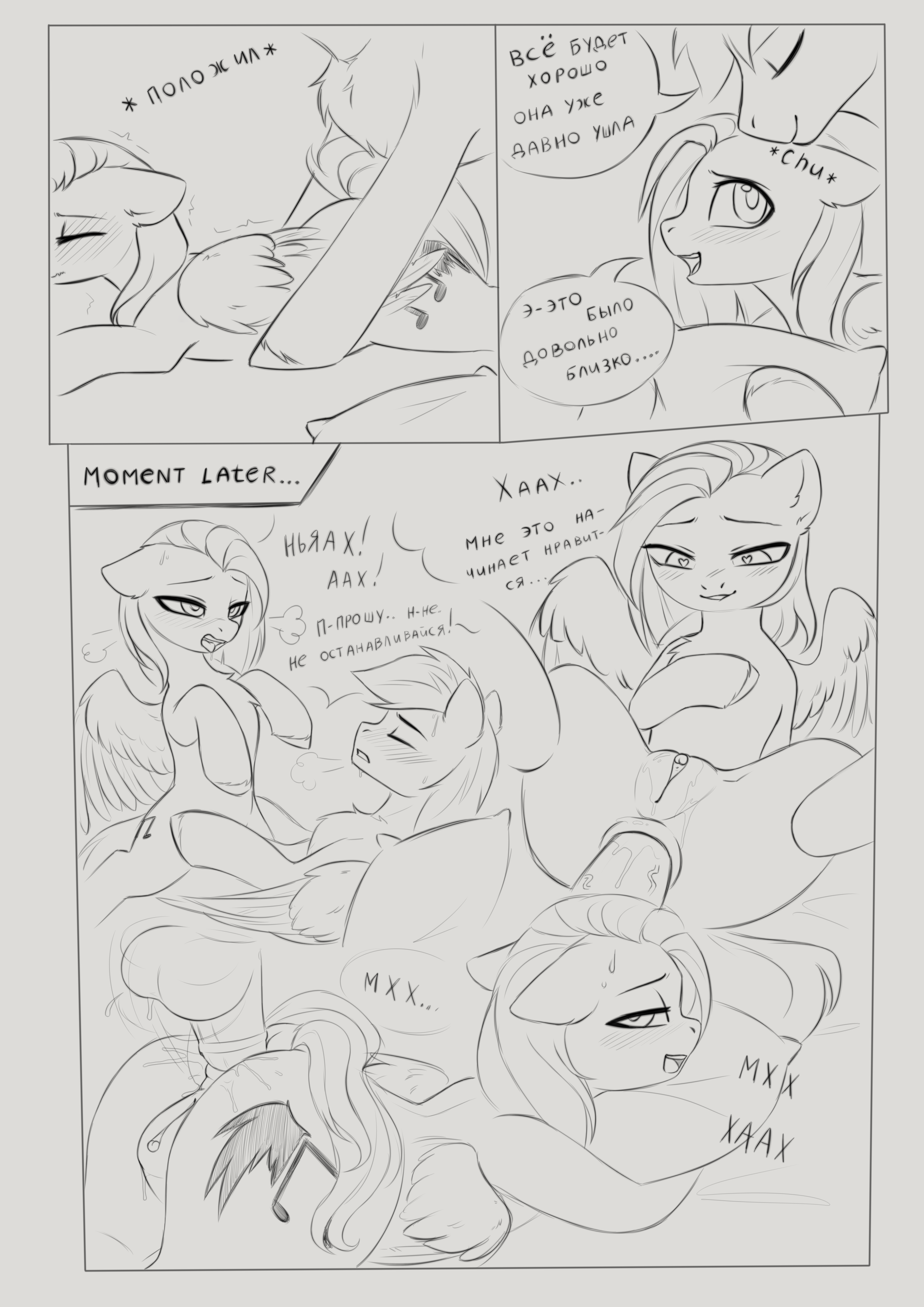 Твайлайт тяжело дышит, ее грудь быстро поднимается и опускается. Влажность от их тел смешивается с запахом старой бумаги и озоном магии. Я... я использовала все доступные формулы коррекции временных парадоксов... — ее голос прерывается ...