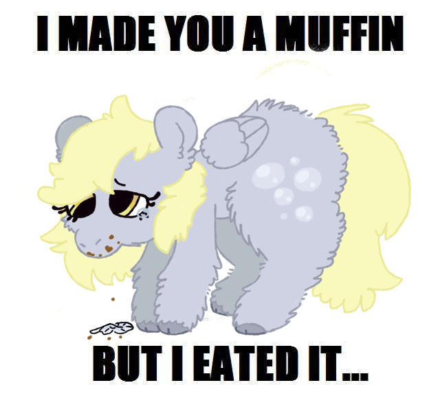 Давненько лежит эта картинка и никак не найду ситуацию в которой я мог бы запостит кому-нибудь её. Пускай она тогда просто будет здесь. Дерпенька сделала вам маффин, но съела его. Случайно. Она хотела его подарить тебе. Извини.