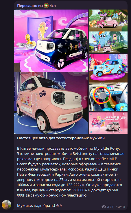 Ну с таким названием им сам Бог велел. Опять же, машинка сверхдешёвая, можно пойти на такие эксперименты. https://ru.wikipedia.org/wiki/Bestune_Pony Только вот непонятно, этих кричателей с Твиттера/Реддита/Фейсбука и т.д. не учили ссылки и подробную информацию приносить? Пока у меня нет уверенности, что это не нейронка. Может, пошутил кто. По запросу Betsune Pony/Bestune Xiaoma новость не ищется.