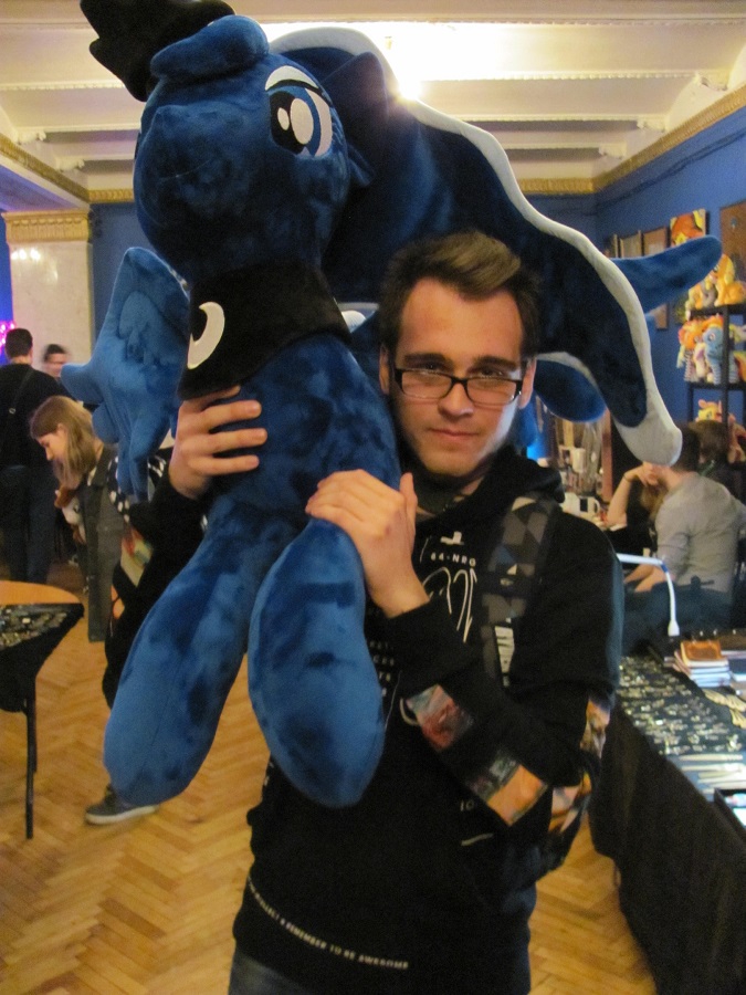 У барной стойки бородатый Родион в костюме белочки методично протирал стаканы. На его мощном волосатом запястье красовался браслет с Иззи Мунбоу, который странно контрастировал с грубым, местами облезлым мехом костюма белочки. Костюм явно был ему мал: швы на широких плечах угрожающе трещали при каждом движении, а молния на груди застряла, зажевав клок огромной всклокоченной бороды, в которой застряли опилки и конский волос.В реальной жизни Родя работал конюхом, и плотный запах навоза, смешанный с едким перегаром, исходил от него тяжёлой волной, что только добавляло ему дикой брутальности в глазах специфических фанаток. Короткие штанины костюма обнажали синюшные татуировки на лодыжках, уходящие в тяжёлые, измазанные в грязи рабочие ботинки. Родя нервно теребил облезлый плюшевый хвост, то и дело дёргая его на себя, словно проверяя, на месте ли он. Его взгляд, мутный и тяжёлый, из‑под засаленного рыжего капюшона пугал окружающих. Этот наряд казался не просто нелепой маскировкой, а гротескным диагнозом: глядя на массивного бородача, все понимали, что «белочка» не просто пришла к нему — она окончательно обжилась в его сознании.Рядом Горбуша, чей костюм Пинки Пай был измазан в саже, присел на корточки и быстро сметал в ведро какой‑то белый порошок. Горбуша обладал аномально большой головой, а когда он оскаливался, зловеще поблескивал полный рот золотых зубов.На самой стойке, среди липких пятен, развалился рыжий кот Стралот. Он был настолько толстым и ленивым, что напоминал перекормленного Гарфилда. Кекс просто сидел рядом, тупо глядя в ленту телефона. Его недавно бросила девушка, с которой они вместе косплеили Дискорда и Флаттершай, и он вернулся на двач.