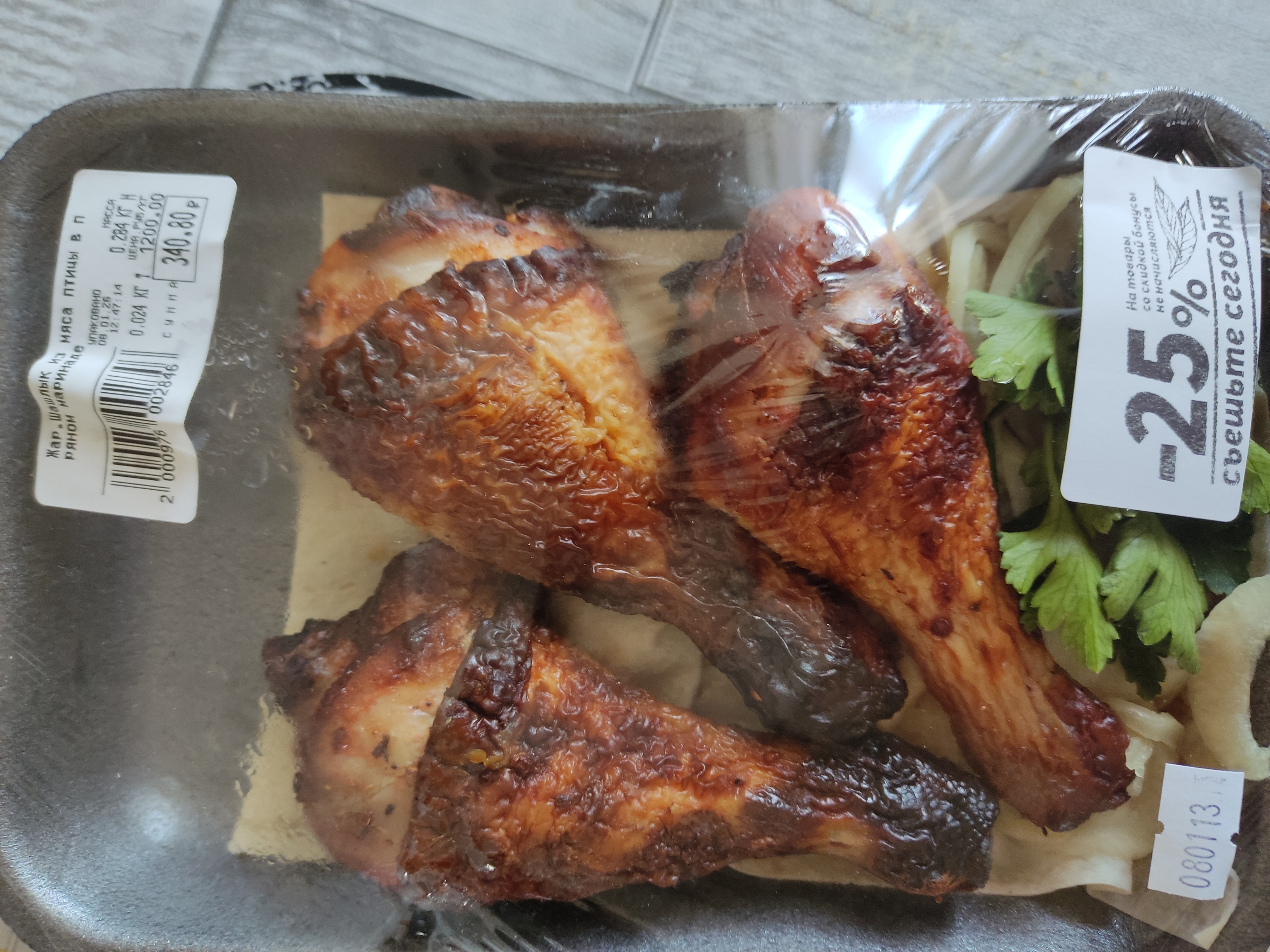 Шашлык бля в пряном маринаде. Курица-гриль на максималках, ноги-итоги. Слава Богу, не я покупал. Сейчас схожее готовлю по пьяни. Даже стебаться особо над этим не хочу