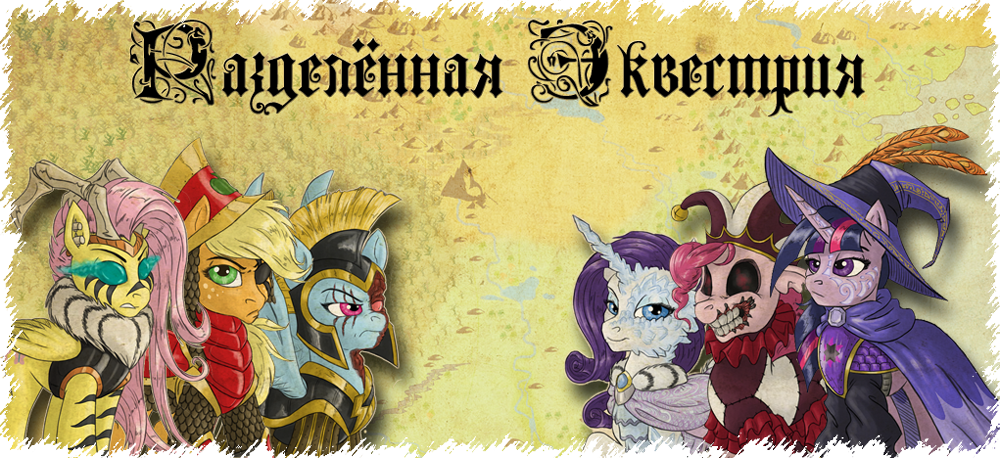 Вкратце о сеттинге - Луна и Селестия в один прекрасный день куда-то пропали, но смена дня и ночи продолжилась без их участия, что привело сначала к бунтам, потом и к распаду страны на несколько разных лагерей, с покровителем из бывшей М6 в каждом.