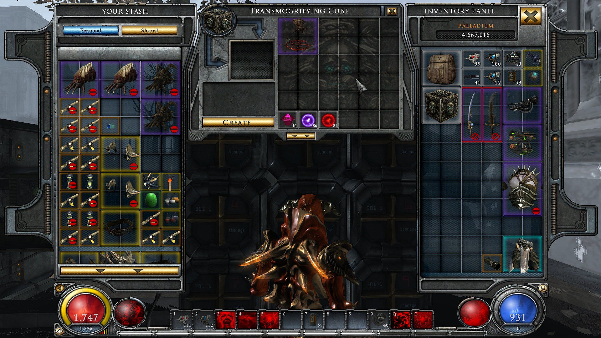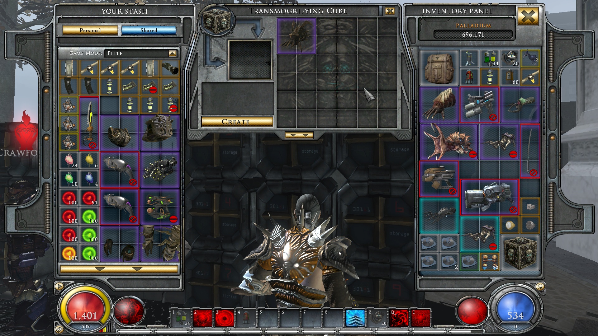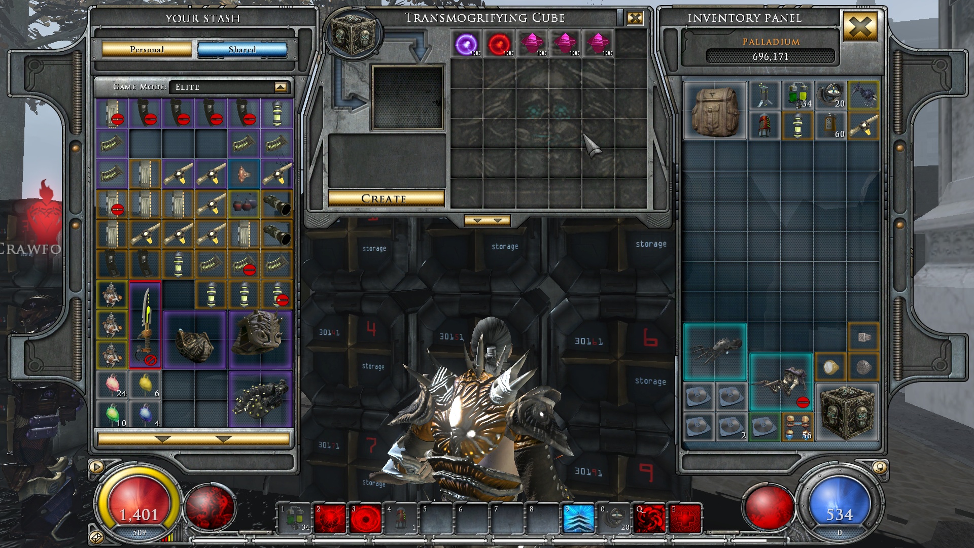 5 дней собирал кишечные кристаллы для этого казино. 4 перчатки ролльнулось. Все говно. Двуручная пушка - говно. Одноручный пистолет - говно. Базы вещей - ну пойдет, хотя ни одной тектакли среди перчей. Но статы и слоты ни о чем. Даа, игровая зависимость от слотов внутри игры.