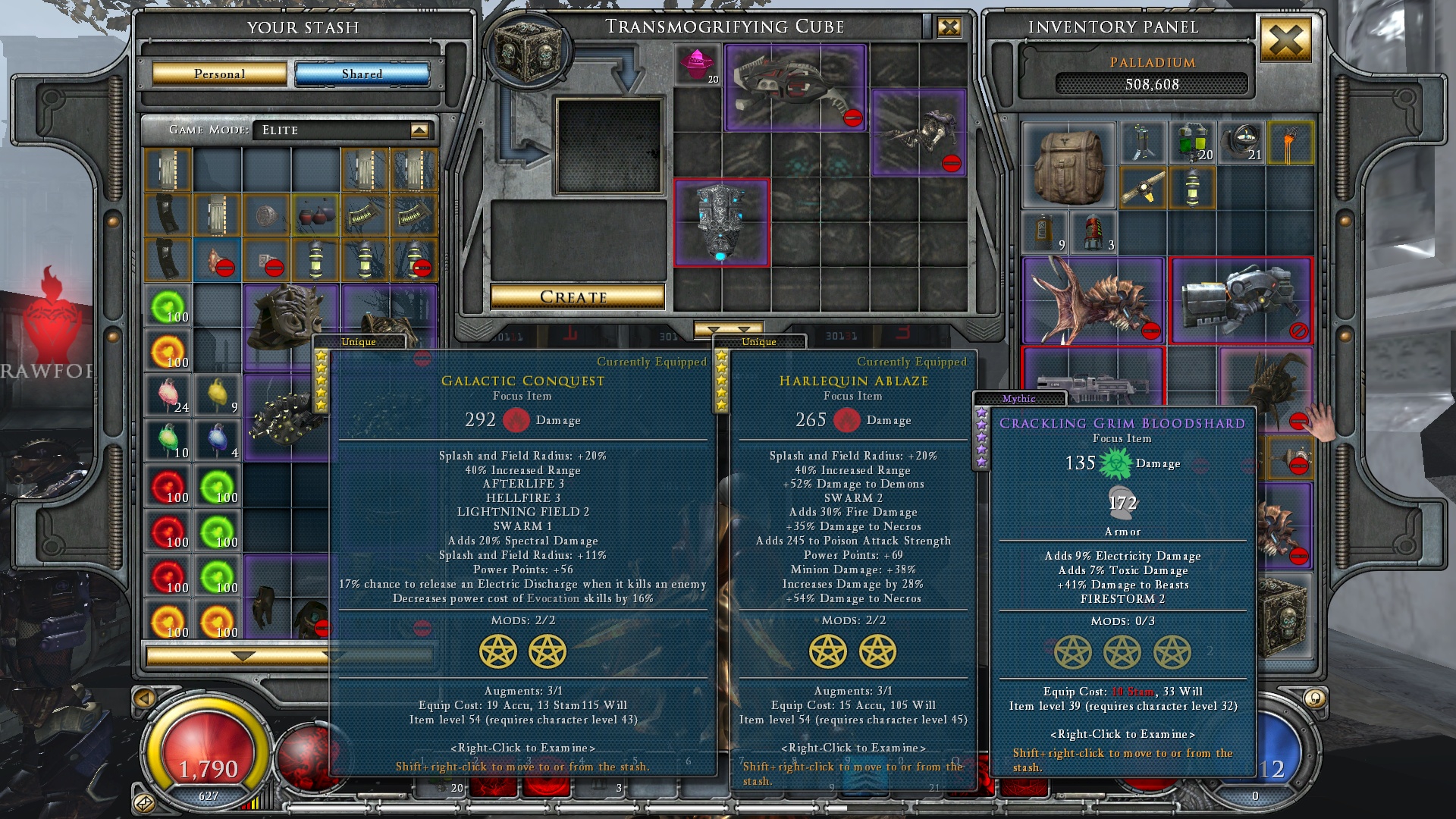 В HGL у шмота есть префиксы и суффиксы, как в PoE, и машинка для добавления случайных, причем на разные суммы можно покупать "обычные", "редкие" и "легендарные". Так вот, нигде не написано даже хотя бы сколько их может быть всего, зависит ли от редкости предмета и какие из них "обычные", а какие "легендарные". Я даже для старых версий игры ни одной таблицы не нашел, блядь. Но даже будь эти таблицы, то это все равно загадка от Жака Фреско. В итоге пользуюсь любым дроп говном, если на нем есть одновременно два суффикса (?) - уменьшение цены спелла и сокращение отката. В машинку не сую, только деньги улетят. Но было бы неплохо еще один нароллить - на бонусный урон моей ветки.