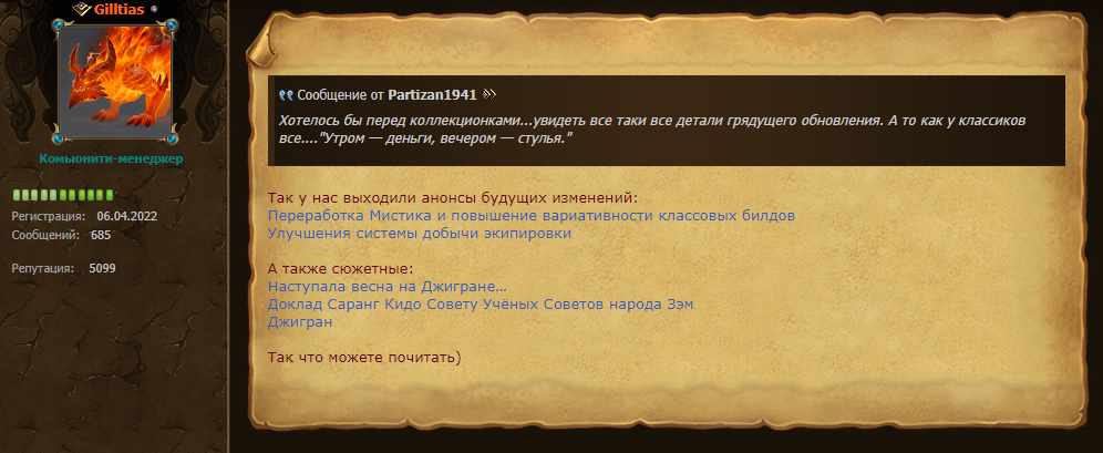 >классы 4.0 версии, характеристики 4.0 версии Кому это нахуй всралось? Это как с наплывом классик серверов всего остального говна. Воркрафт классик был успехом лишь потому что весь его контент в актуальной игре отсутствует. Это подтверждает многократное падение онлайна в тбк классик, ведь тбк в актуале никак не тронут был, хотя сам тбк намного более полная игра в плане контента и баланса. Туда же пошел и лищ классик, где онлайн упал еще сильнее, несмотря на то что экспаншен более популярный и на пиратках его играют поехавшие до сих пор. Однако никому он нахуй не нужен, потому что лища ты можешь поиграть на актуале. И по своей сути лищ это и есть актуал лайт.