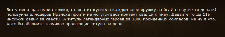 Бля, да это же жжшечная коляска, которая голду кроме ик нигде не может нафармить и в т2 одеться, пришла теперь про соло-корабли/острова/обс/рейды визжать.