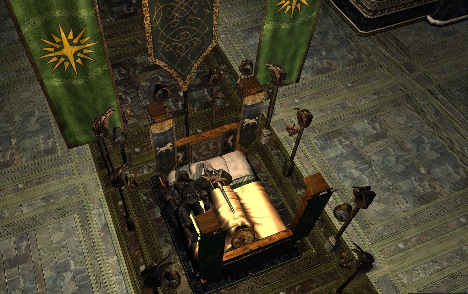 Нашёл топовое место для посиделок. Арагорн пускает сопли и прочит слезть чтобы закончить церемонию наконец, а я успел дико нагазовать в шлем. Вот такая жизнь в Средиземье!