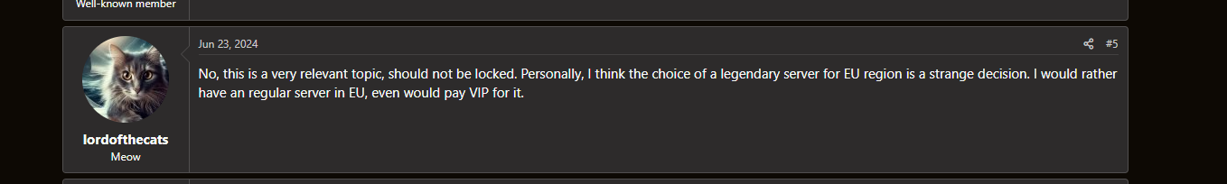 >>6627332 UPD: Понял принял - ебало завалил. Кажись реально на EU сервер запустят, около недели назад читал про ветку обсуждений на форуме, там никакой информации касательно расположения не было если правильно помню или проебался где-то, поэтому такой вывод и сделал заранее.