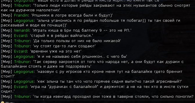 В третьих: > Я считаю, что ммо как раз таки не должны подстраиваться под соло дрочил Соло дрочилы это деньги. Ходячие мешки с деньгами. Которые просто пойдут в другой проект нести свои деньги, если им тут не создать условий.