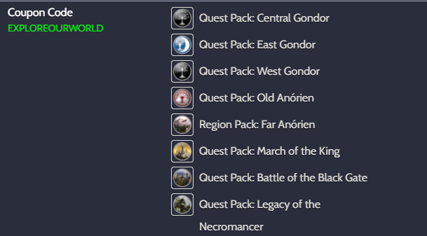 Разработчики продлили действие купона EXPLOREOURWORLD, который дарует все квест-паки игры до Гундабада включительно. Активировать его можно во внутриигровом магазине.