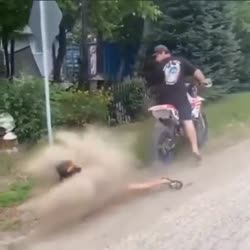 Но если выжать сцепление - колесо покатится и скорее всего схватится за асфальт, но при том, что мот уже скользит вбок. В результате мотоцикл РЕЗКО кувыркнет вбок через колёса - ХАЙСАЙД (не путать с ХАЙФАЙВ, это другое). Тебя закатапультит в воздух, причем чем быстрее едешь тем выше - ты сначала пизданешься на асфальт с приличной высоты, потом в тебя может прилететь, кувыркаясь, твой же мотоцикл, а если и нет - будет скользить СЗАДИ тебя догонять. Упаси боже тебя влететь в препятсвие: мот уебёт тебя сзади как слепошарый мудак, не глядящий на стопы
