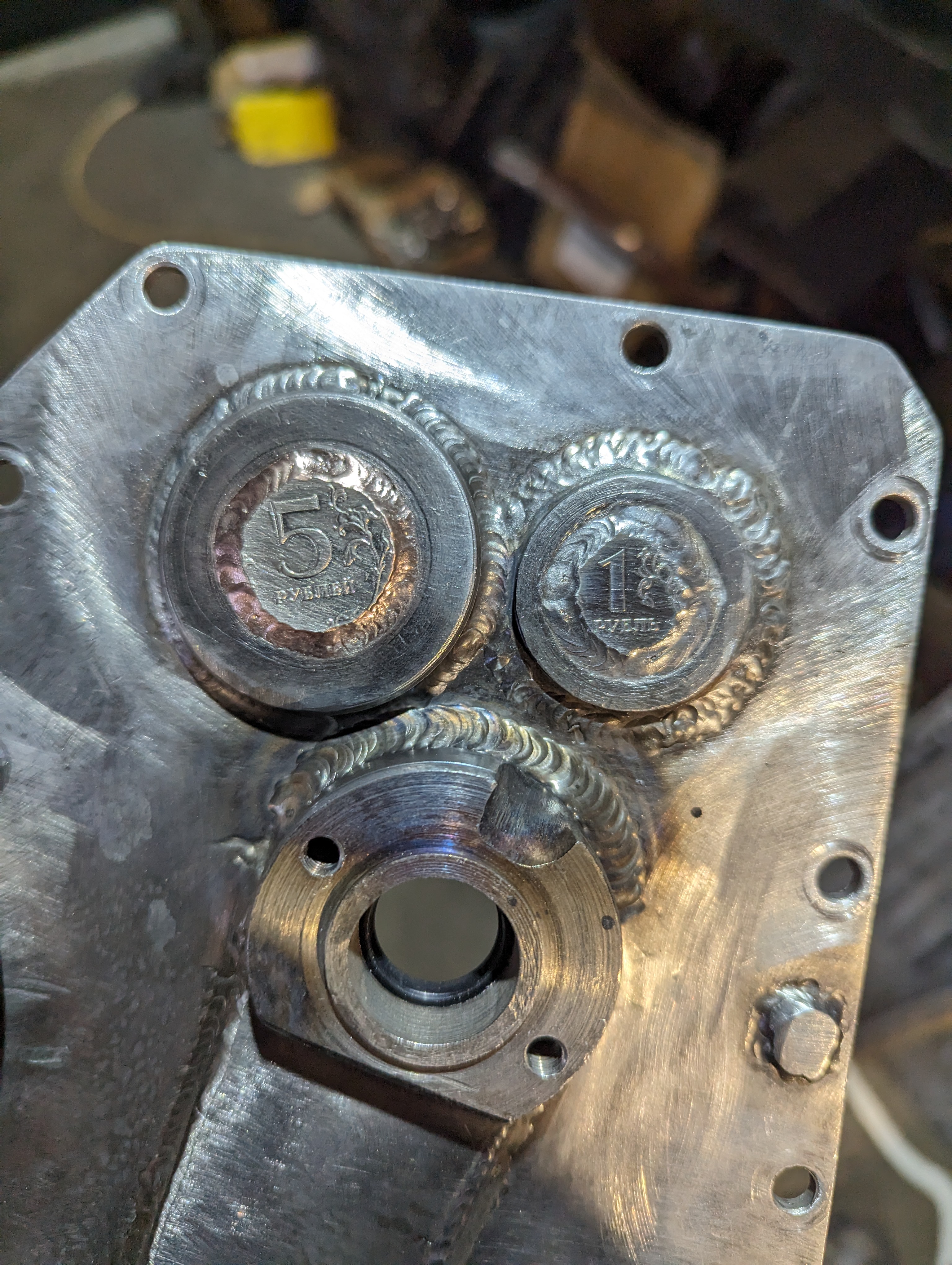 >>511276 На этом изображении видно, что я изготовил поверхность, на которую будет прикручена правая крышка. На правой крышке будут отверстия для подшипников распредвалов, сальник коленвала и статор генератора