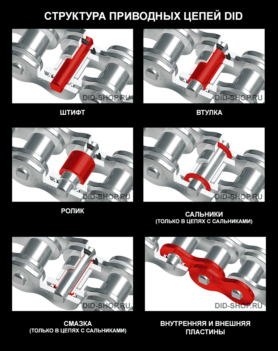 Кузьмич из гаражей выдал базу по всем цепям. Маркировки, устройство, принцип работы, преимущества и недостатки цепей разного типа. И конечно обслуживание.