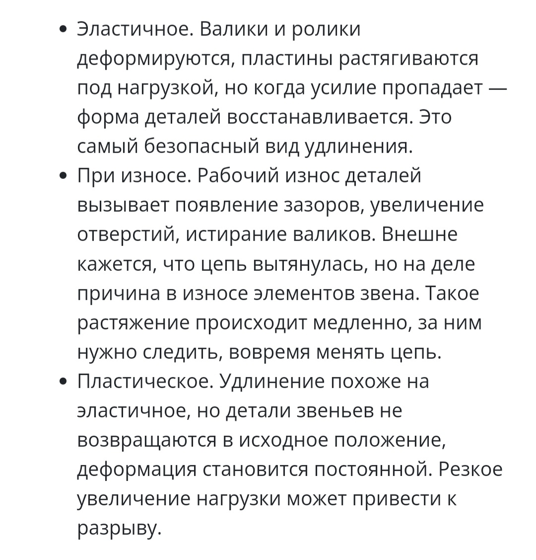 Про растяжение вообще рофл. Речь не о том что цепь нельзя растянуть или порвать, а о том, что естественный износ вызван не тем что пластины тянутся и какие-то пластические деформации там происходят. И я тебе задал конкретный вопрос: если износ цепи связан с растяжением звеньев то зачем её тогда вообще мыть, каким образом мытьё может помешать деформации. Давай, виляй жопой, мастер риторики, бля. Хотя в общем уже понятно всё и так, твои приёмы общения разве что работяг из сварочного цеха могут впечатлить, что-то уровня кто громче пиздит и обиднее обзывается тот и прав, лол. Потому что павианы не могут в аргументацию.
