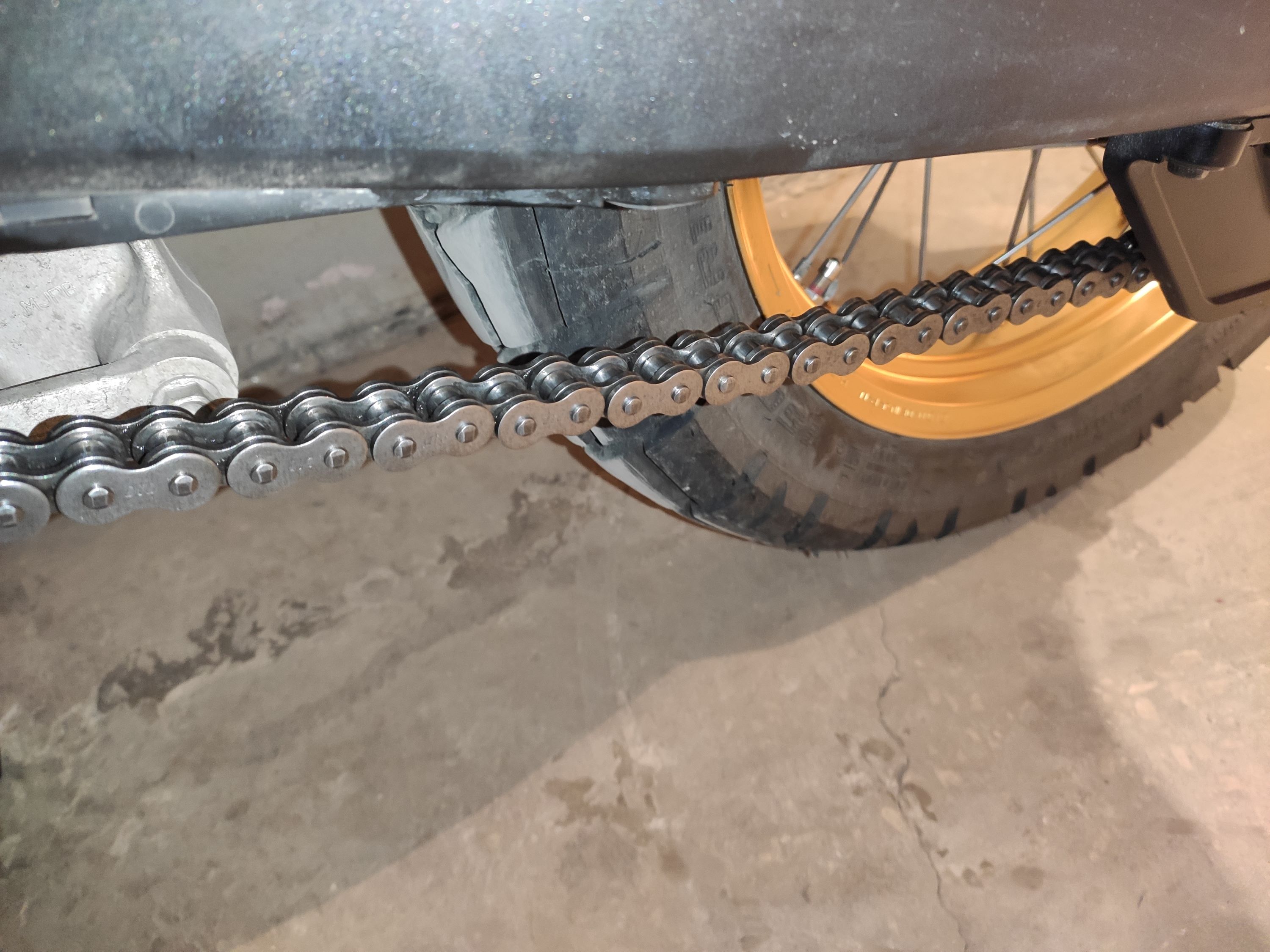 Добавлю, пока разлетается заводская смазка и не накручено даже тыщщи, всё будет нормально. Ждём первичной растяжки. Склонная к тянучке цепь проявит себя на первой 10 пробега. Врятли я столько накручу за сентябрь-октябрь, поэтому цепной вопрос на этот сезон закрыт.