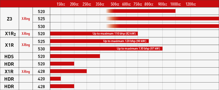 Заменил стоковую усиленную Choho 428 на такую же, но сальниковую X-ring. Стоковая тянулась как сука, подтягивал каждую 1000 км примерно. Новая же заебись, почти не тянется. Двигатель дохлый 164FML. Ну хотя как дохлый, дёргает любые коробки в городе, кроме БэМэВэ.