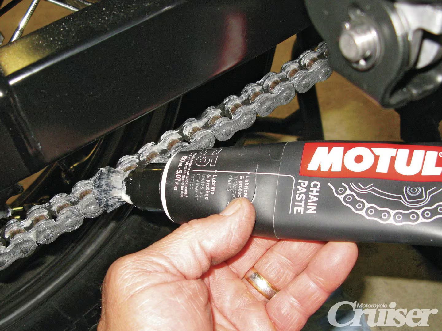 Отличие "чего угодно" от специальной смазки для цепи мотоцикла - в удержании на самой цепи (рандомные смазки-масла быстро улетают). По этой же причине все мотосмазки - аэрозольные: они очень жидкие когда брызгаются, потом растворитель улетает (минут за 10-15, с тёплой цепи за 5) и смазка становится густой и липкой.