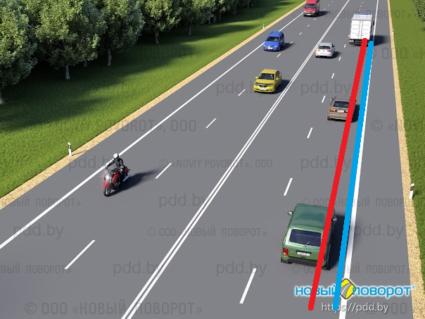 Правая часть - это правая часть. Но понятие-то растяжимое, если смотреть на дорогу ИРЛ. Ехать я могу, понятно, что не посередине, не в левой полосе, собирая за собой толпу нетерпеливых, кто ездит +19 км/ч, а справа. Но где? Где красная линия - колея, или голубая - ближе к обочине?