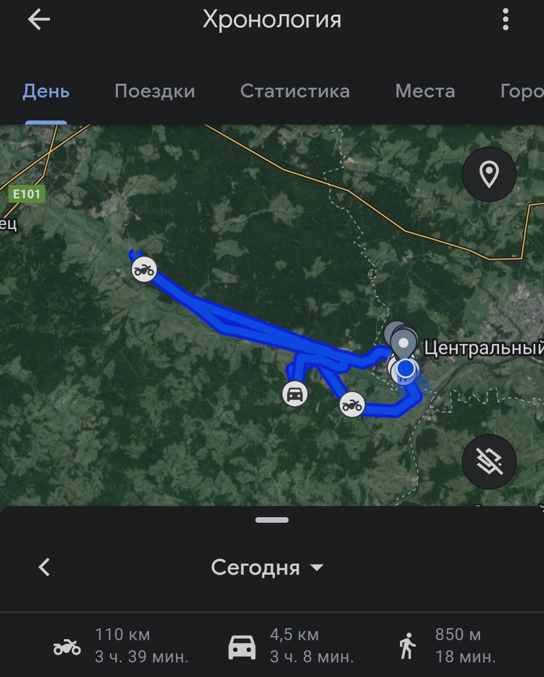 Ух, вчера по кайфу прокатился на своем мопеде. Проехал около сотни км, половину по лесным грунтовкам и бензина больше половны бака осталось. Когда ехал по деревням - 70 км макс наверное, да больше и нинужно. Стремался поворотов ибо на асфальте часто ПЕСОЧЕК с обочины выдувает и разок я уже ебнулся на нем. По грунтовке ехал на третьей порой газуя до макс оборотов, но не переходя на четвертую, показалось так ездить веселее, можно и быстро разогнаться и успеть затормозить. Нашел в лесу трек где гоняли на питбайках, прокатился по легчайшей траектории - кайфанул. Был в 30 км от ближайшего населенного пункта и все равно по всюду грибники ягодники. Встретил буханку глубоко в лесу, из нее мне махала и улыбалась тянка кек, за рулем наверно ее батя суровый лесной мужик сидел.
