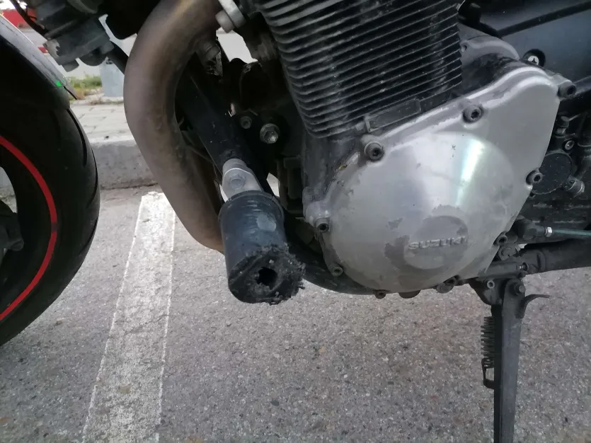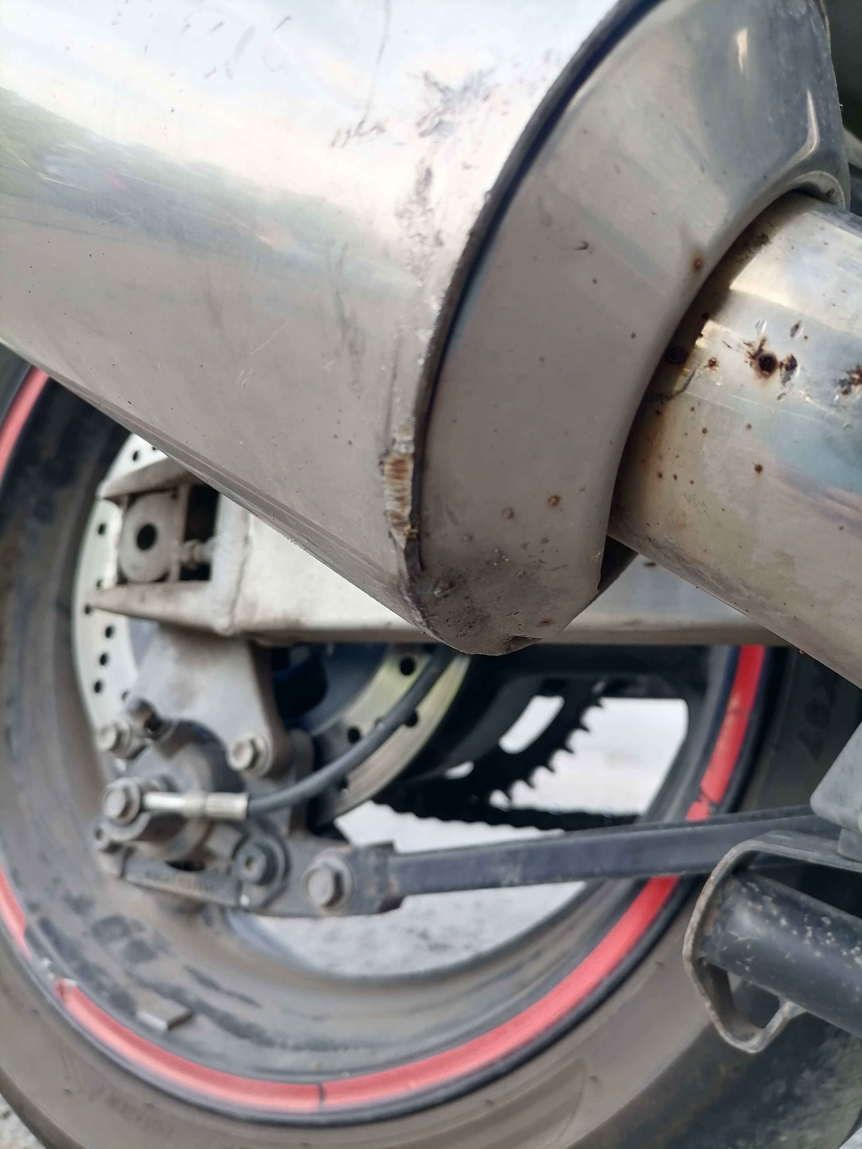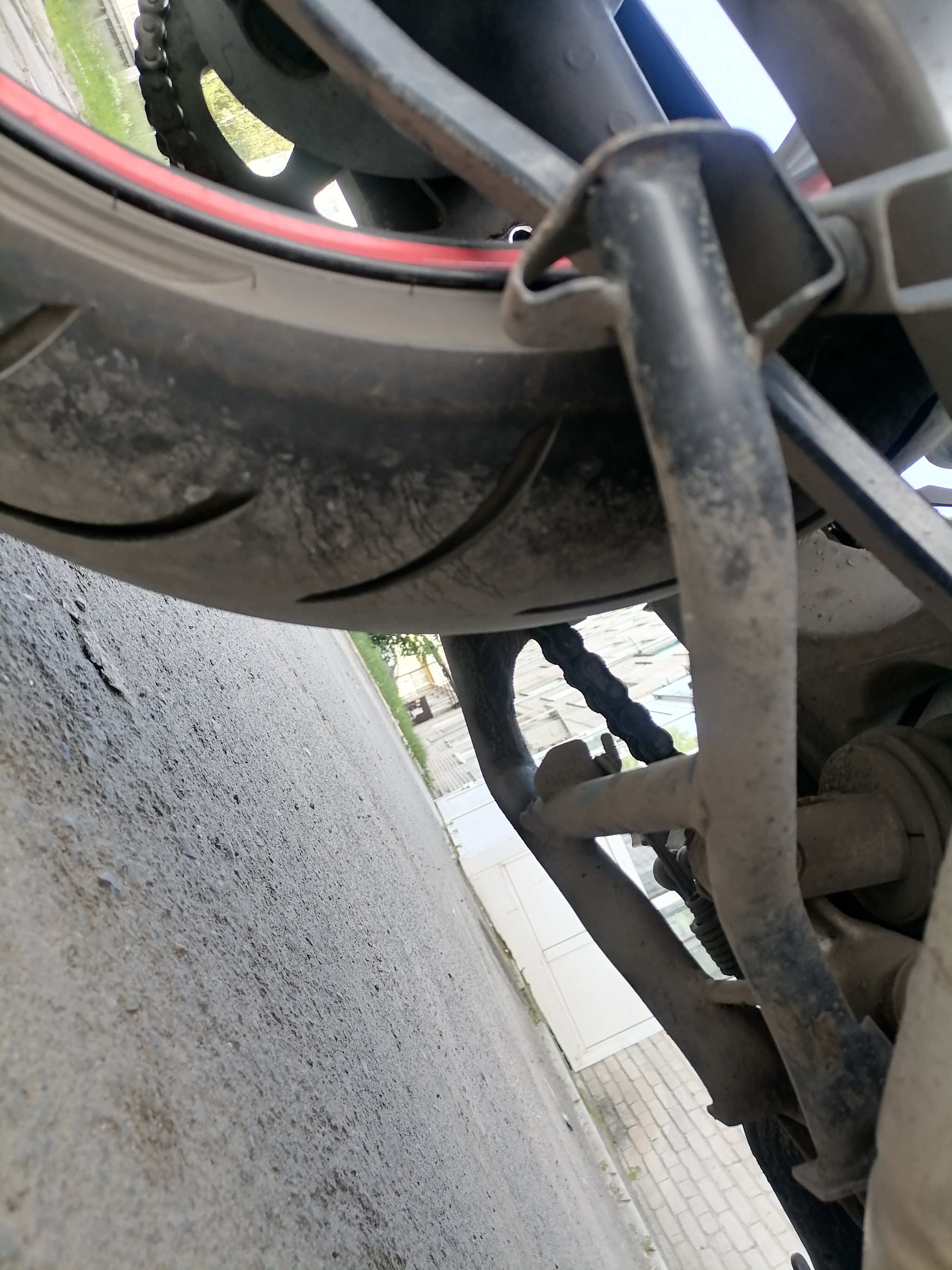 >>472689 Да не, есть конечно подозрение на выхлопуху, она немного подмята, а упор для центрально подножки именно на ней, но это не точно