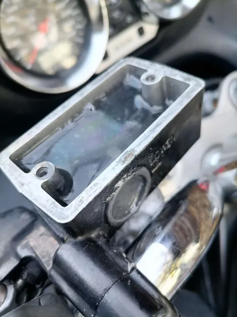 После снятия крышки ОТСОСАЛ шприцем тормозуху и думаю, а чего делать? и чет я решил пальцем надавить слегка на окошко И СТЕКЛО РАССЫПАЛОСЬ! Срака моя затрещала от ненависти, не знал че делать, в итоге выдолбил нахуй оправу окошка, влепил туда 10копеечную монетку и замазал нахуй эпоксидкой двухкомпонентной, которую размешал ПРЯМ НА СВОИХ ПАЛЬЦАХ БЕЗ ПЕРЧАТОК.
