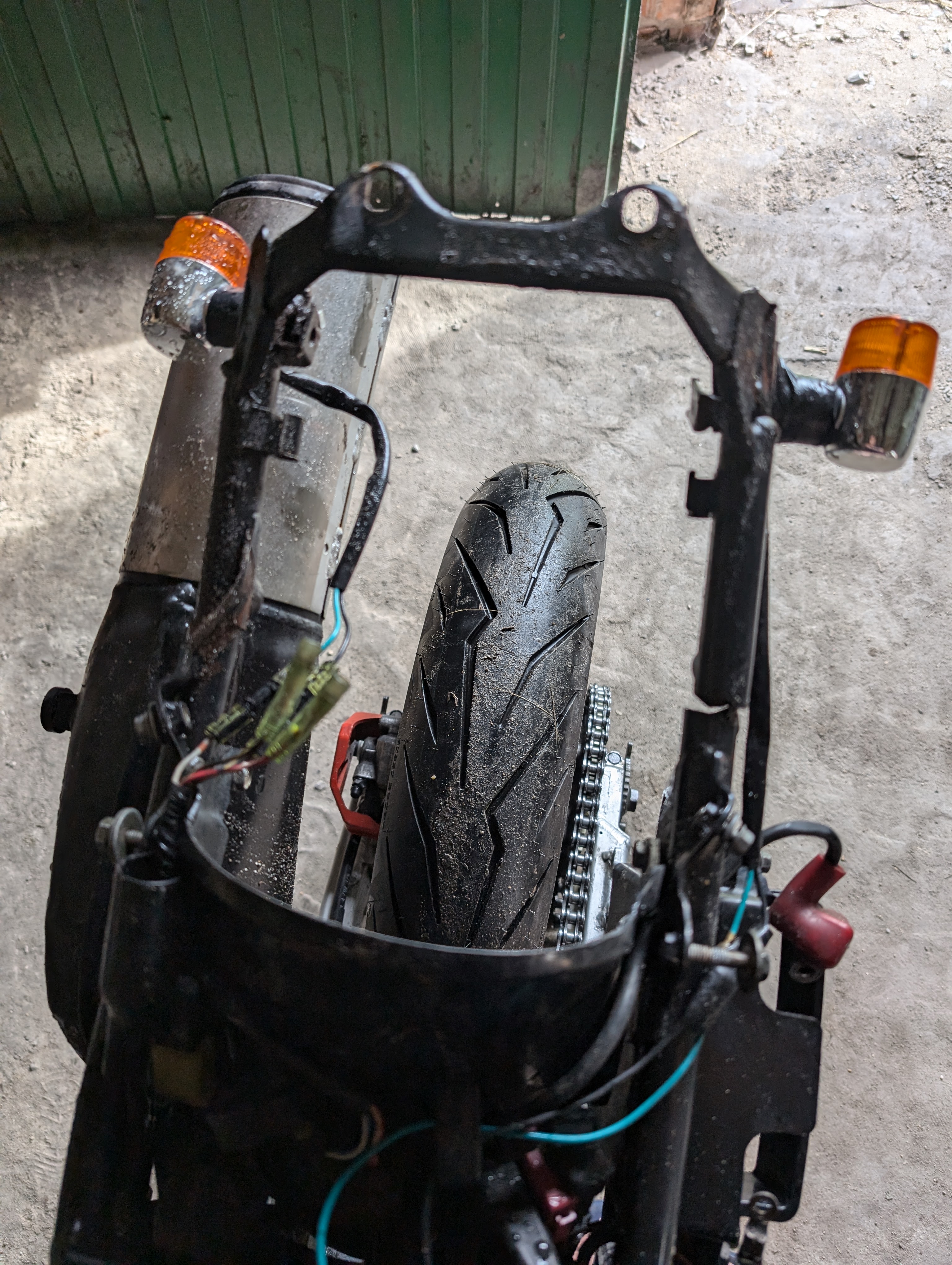 Что с сузукой не так: Некуда крепить левое зеркало, поворотники отваливаются, шланги системы охлаждения старые и начинают трескаться, проводка вся уёбанная, хотя работает тем не менее, в бочке для газолина какой-то говняк, ну и мелочи вроде подтекающего пера вилки и заднего аморта само собой это я ожидал даже. А самое хреновое, как оказалось то, что отваливается херня, которая должна держать сам хвост с жопным фонарём и номером - тупо металл с одной стороны сломан и ржавеет, а с другой просто ржавеет, но вот вот отвалится. Но в остальном рама в норм состоянии. А ещё кажется ему рычаг сцепления ломали, тому что не стоковый стоит, видимо тогда же и зеркало отвалилось.