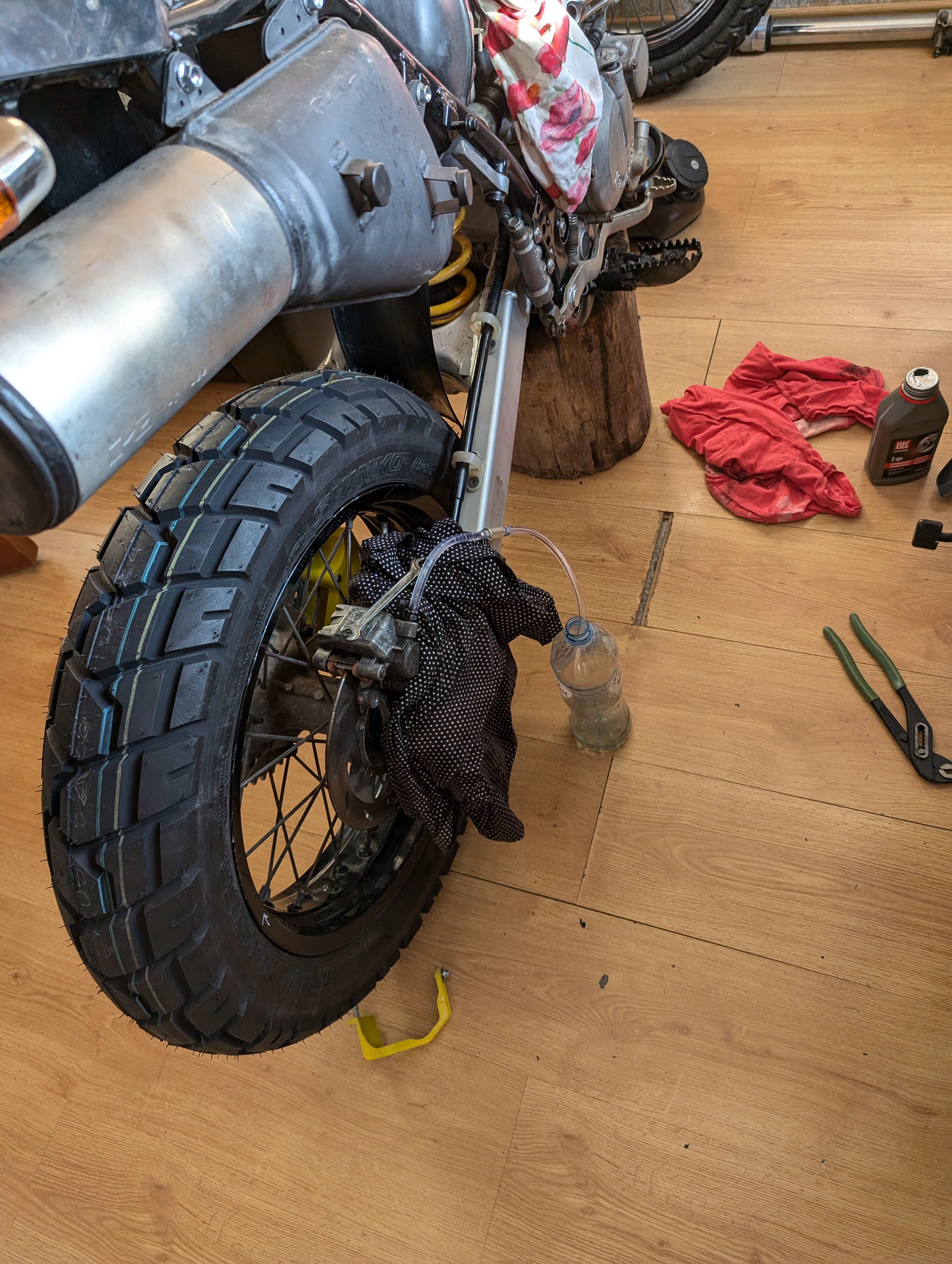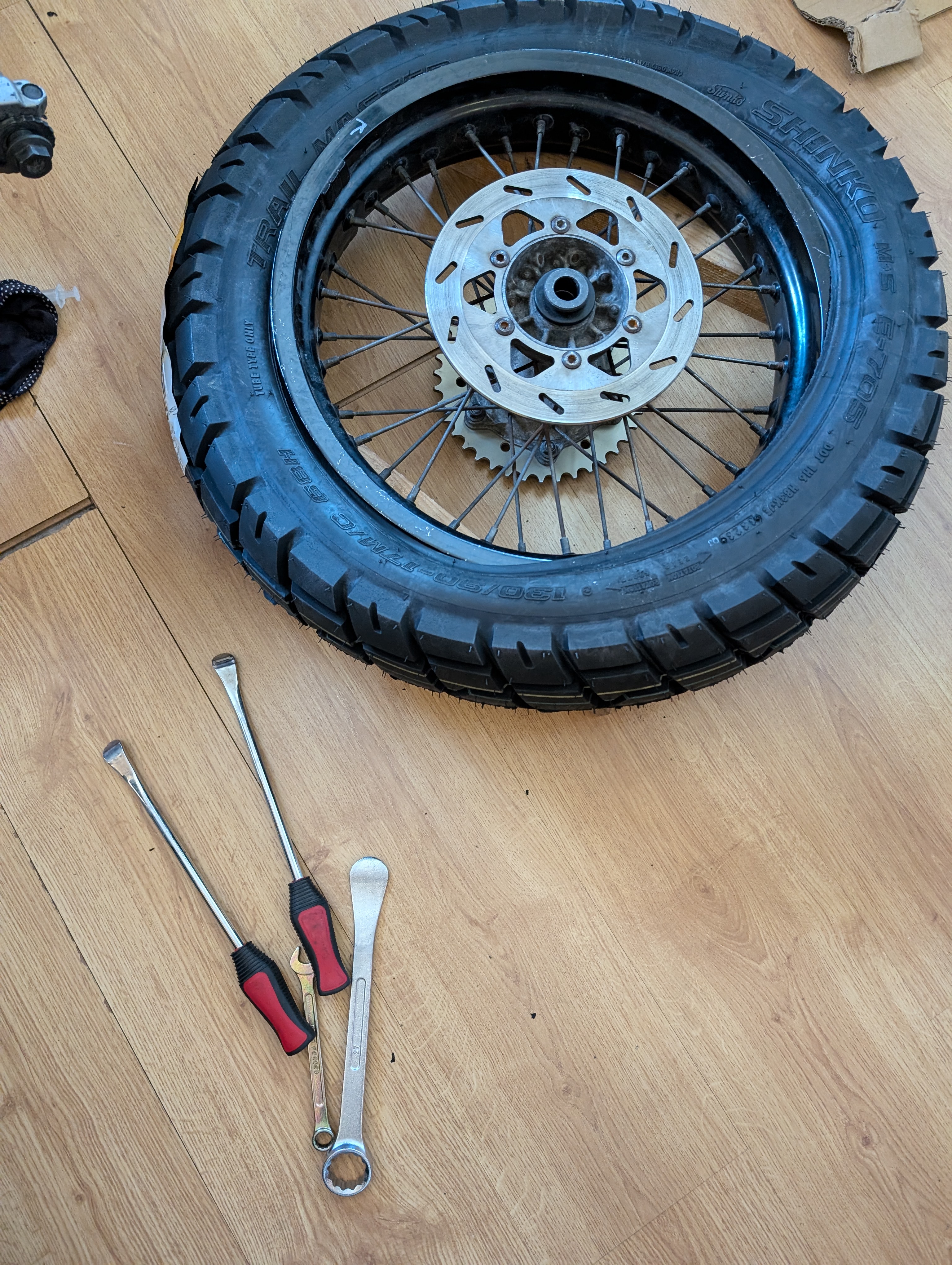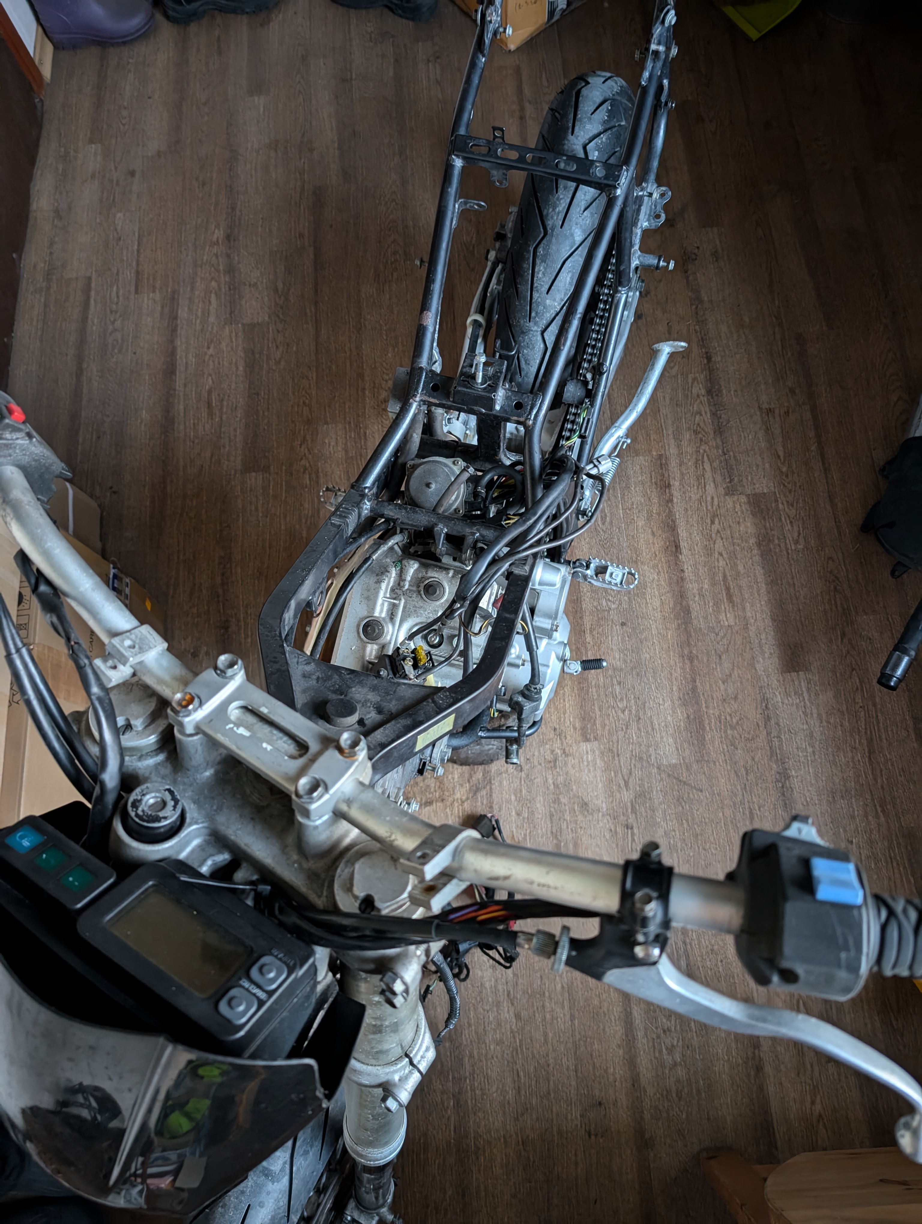 Прогресс начался и внезапно остановился. Для маленького динамометрического ключа нужна головка на 12 с посадочным диаметром 1/4, но ни у меня, ни в магазинах мухосранска такого не оказалось, теперь ждать с озона придется. Ну и переднюю покрышку поменял со гладенькой на нормальную, задней правда пока нет и придется докупать. Алсо, жду с нетерпением фазы сборки шлангов и проводов - это как по мне самое жесткое во всём процессе будет.