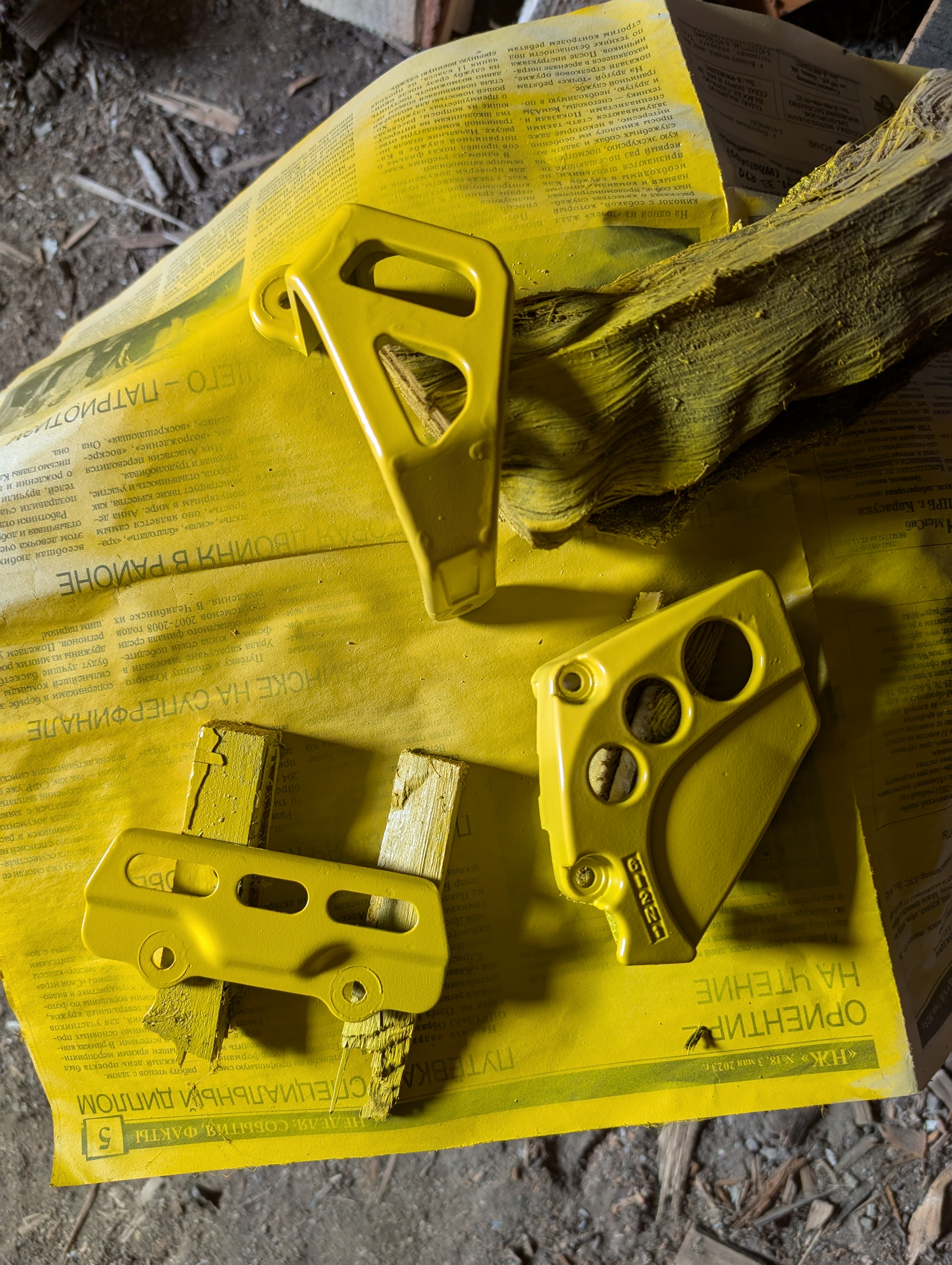 Сегодня распидорасил часть своей Сузуки, но до конца не успел потому что темнеть начало. Ещё покрасил в жёлтый защиту заднего суппорта, защиту заднего тормозного шланга и крышечку для передней звёзды. Было оранжевый, теперь жёлтый. Почему так? А потому что пружинка на реар шоке жёлтая и ещё я шлем хочу пикрелейтед - всё будет сочетаться и хорошо выглядеть. Сам реар шок кстати наверное отдам на перебор в мастерскую, а то я гайды посмотрел и что-то слишком это мудрено получается, плюс инструмент специальный вроде как обязательно надо в большом количестве. Это вам не фронт форк перебирать. Но ещё подумаю конечно по этому поводу