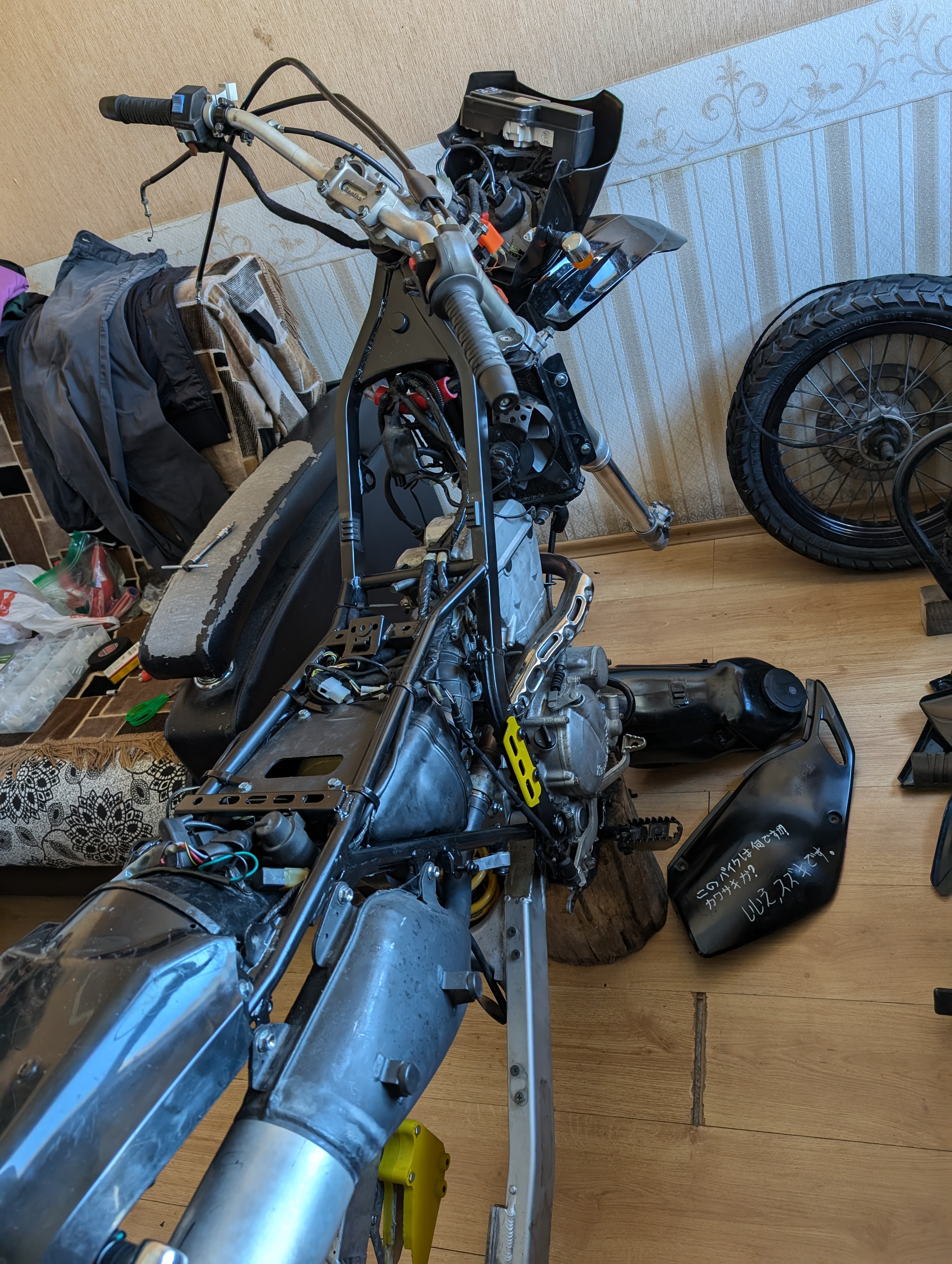Вот и чо делать с мопедом? Реар шок абсорбер только закончили чинить и будет сейчас ехать, экзост систем поставить на могу тому что прокладок пока нет, шланги для системы охлаждения тоже тому что проебался и хомуты не того размера выписал, а проводку делать не могу тому что сначала лучше шланги поставить, а то потом неудобно будет... Вот и теперь смотреть на него только и всё ¯\_(ツ)_/¯