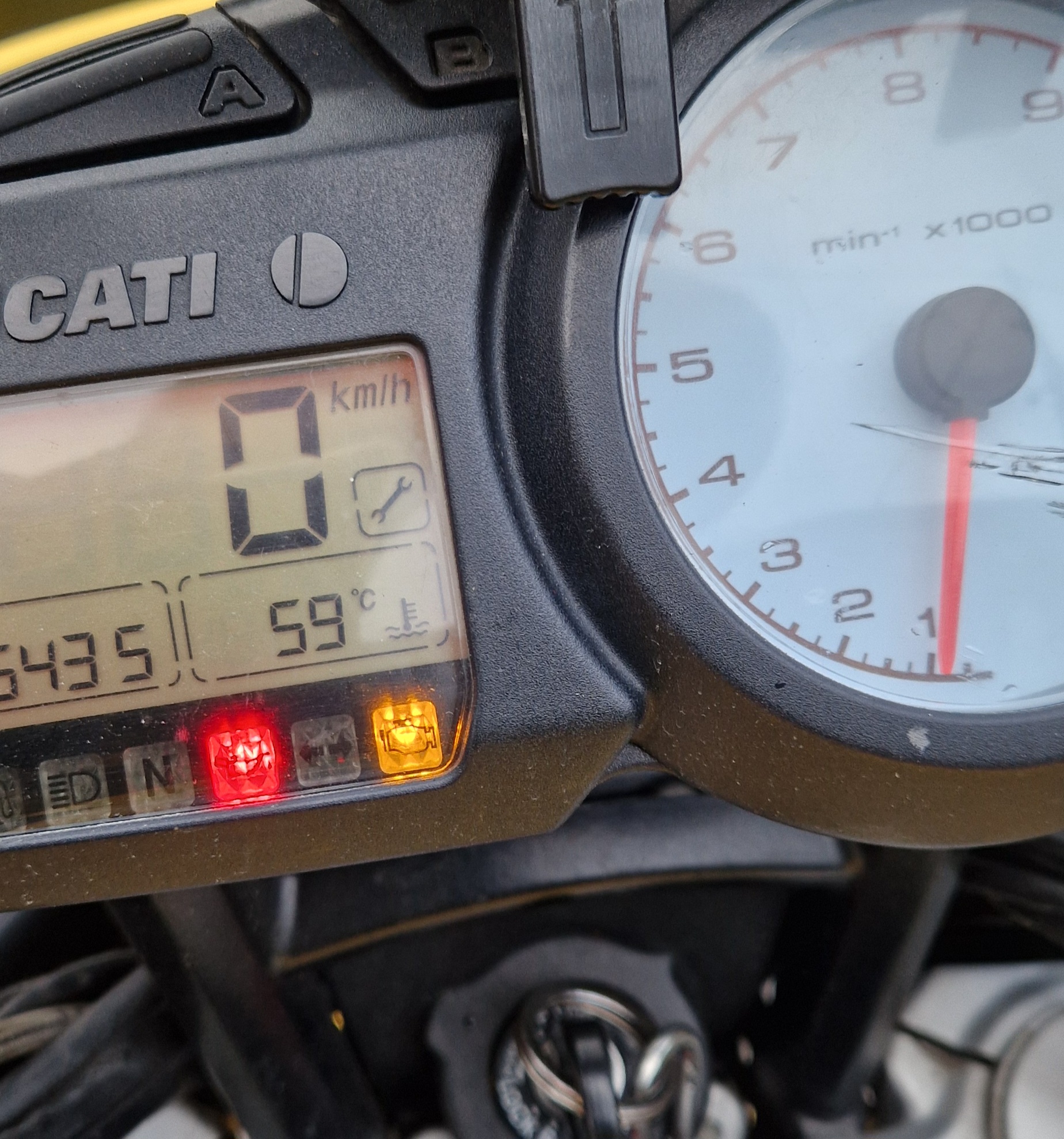 >>510903 Чтобы узнать, какая именно ошибка зажгла чек, на дукати этого поколения достаточно зажать на приборке кнопку А и включить зажигание, код ошибки будет на приборке. В моем случае это 5.1 (Battery voltage too high), что вероятнее всего говорит о выходе из строя выпрямителя-регулятора напряжения. Страшная, страшная 20-летняя некруха!