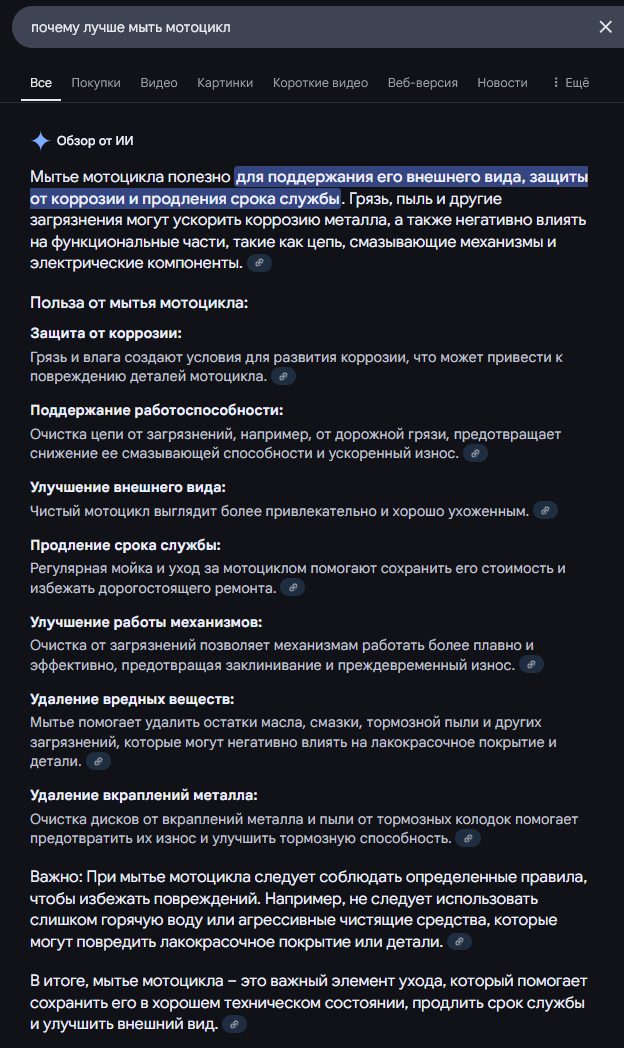 >>498676 С чего ты взял, что прям пидорю хром? Просто после большой покатушки или попадания в дождь не ленюсь заехать на мойку аккуратно смыть мошкару/грязь. И мне приятнее на чистый моц садиться, и лкп лучше сохранится.