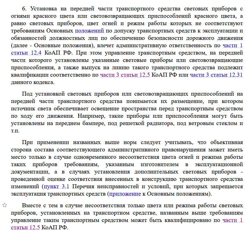>>493701 Все плёнки и все дополнительные отражатели - вне закона, вообще все. А ещё, если у тебя конструктивно галоген, а ты присрал туда ксенон или диоды - за такое вообще вплоть до лишения прав. Но насчёт жёлтого света в правилах есть миллипиздрическая лазейка. Если у тебя галогеновая фара, и ты вкручиваешь туда галогеновую же лампу изначально жёлтого света - это НЕ нарушение. По регламенту таможенного союза головной свет может быть белым или жёлтым. Т.е., ещё раз, жёлтой должна быть именно сама лампа, НЕ плёнка на фаре и НЕ всякие щитки-экранчики: ни того, ни другого по правилам вообще быть не должно.