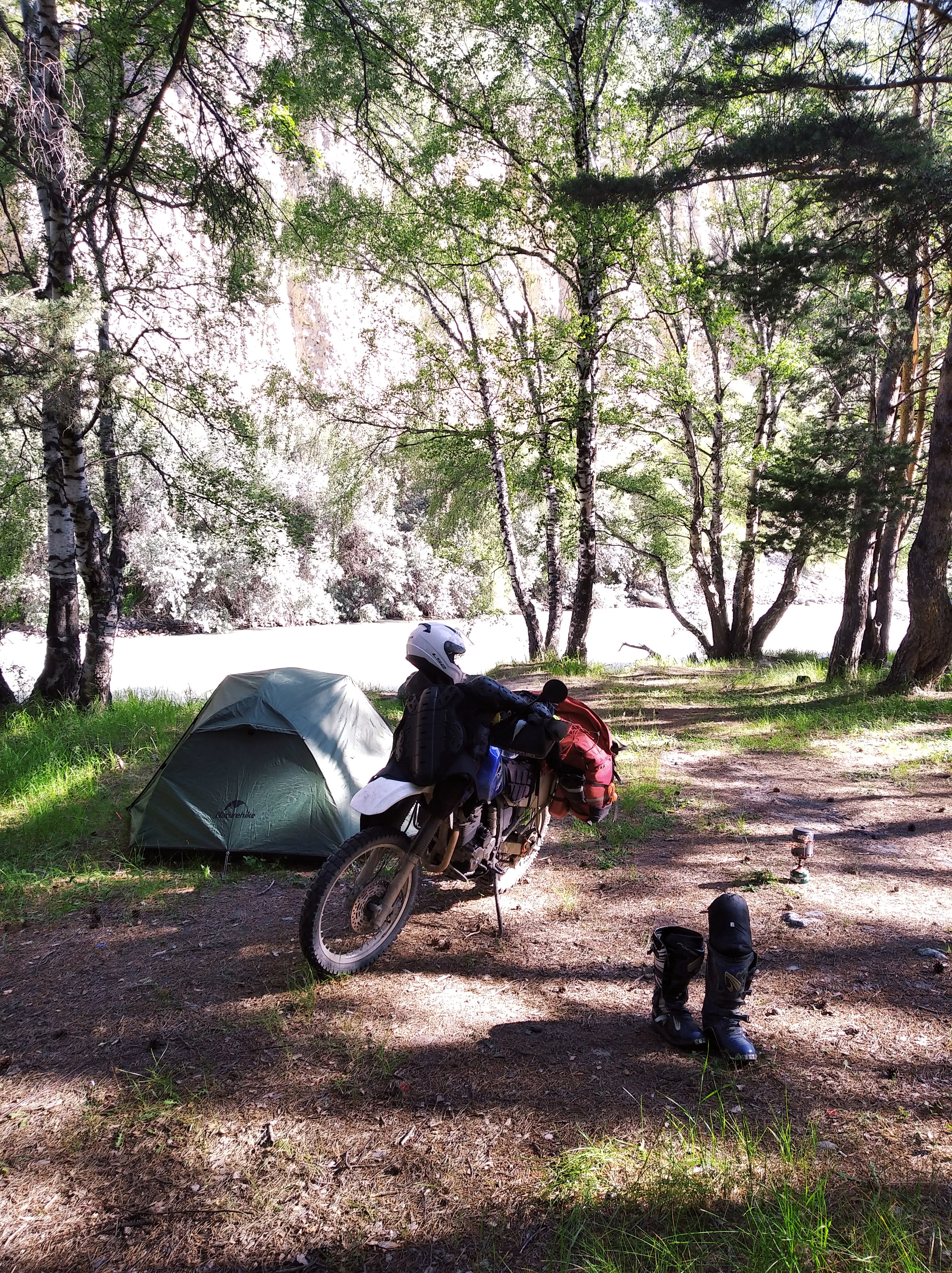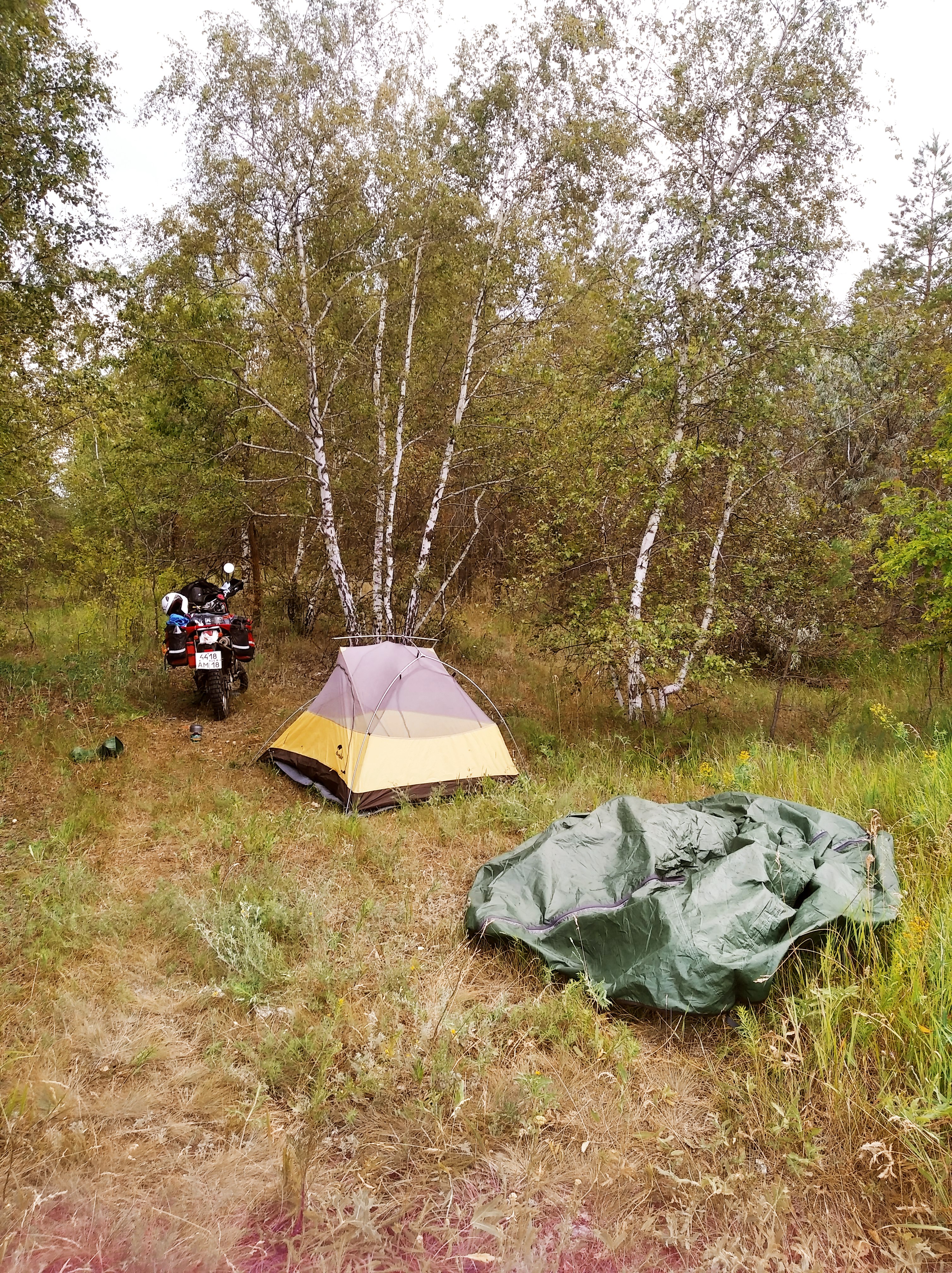 Встал сегодня пораньше, чтобы отдохнуть. Неспееешно развернул палатку, просушил её. Попил чайку с таблетками. А место то какое офигенное! В берёзках, КОМАРОВ НЕТ, птички поют и иногда ухает сова или филин.